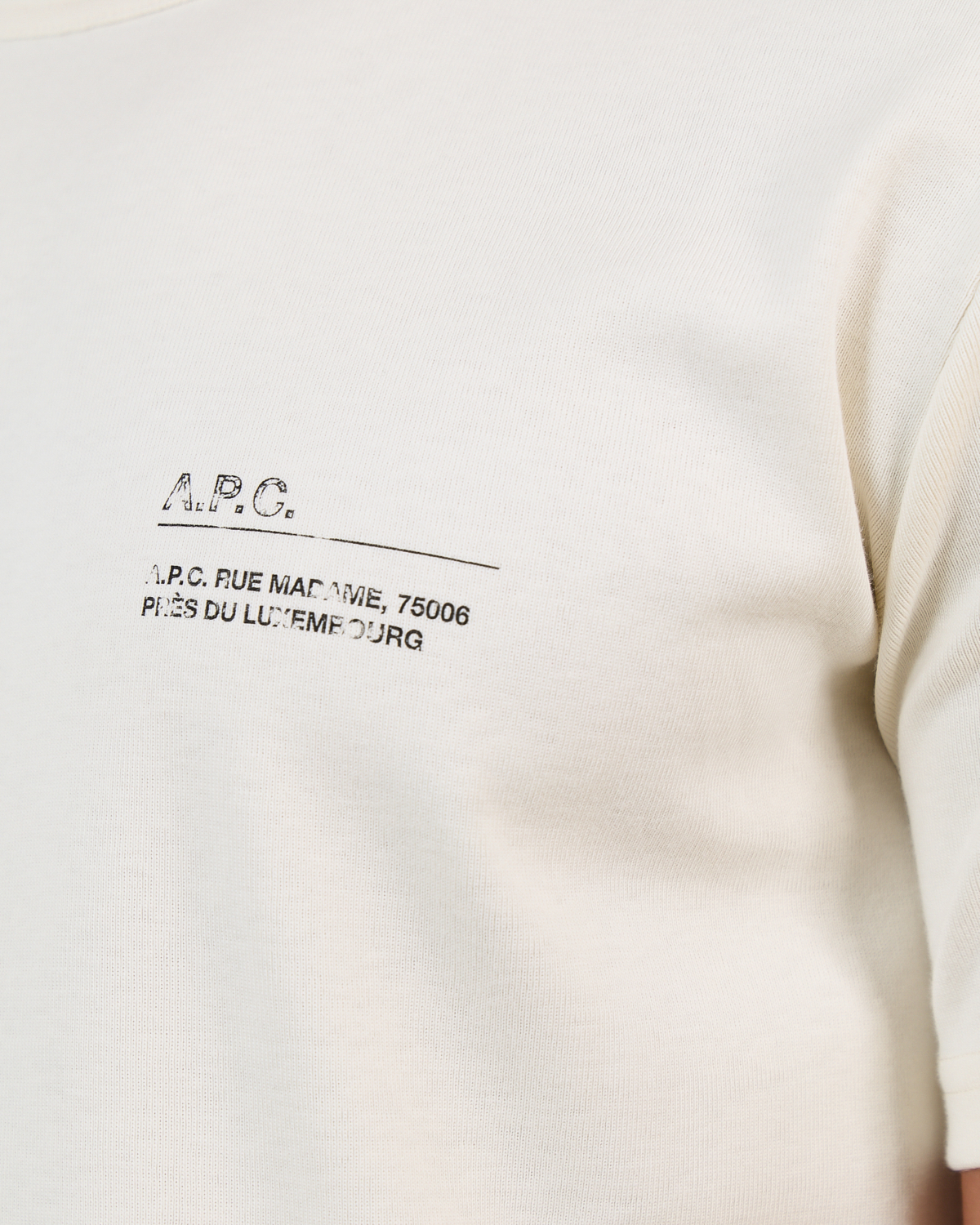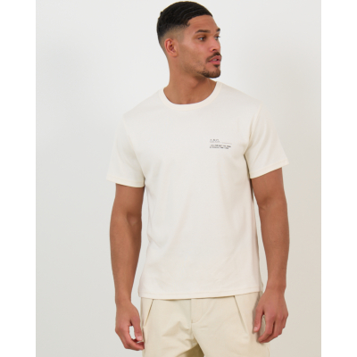 This beige print tee from A.P.C. showcases refined simplicity with contemporary appeal. Crafted from 100% cotton, the soft fabric ensures breathable comfort throughout the day. The regular fit creates a relaxed silhouette that moves naturally with you. A subtle chest print featuring the brand's Parisian address adds distinctive character to this essential men's clothing piece. The round neckline and short sleeves maintain classic proportions.