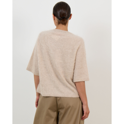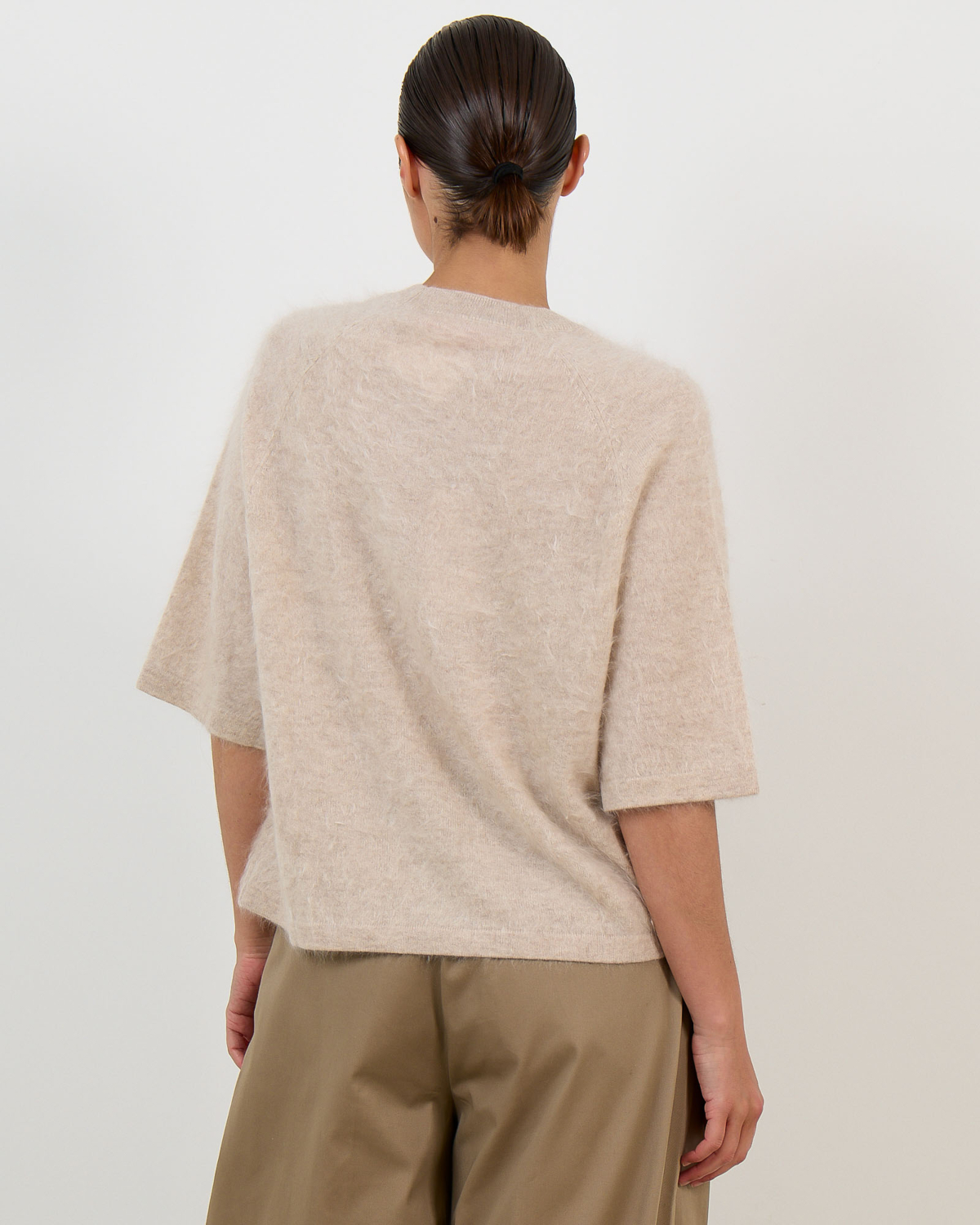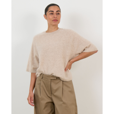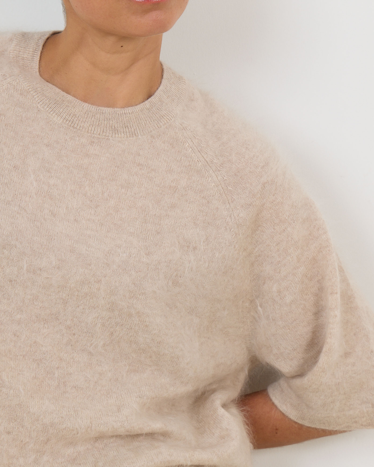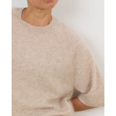 This luxurious women's clothing piece showcases the finest brushed cashmere in a warm beige tone. The relaxed fit sweater features three-quarter sleeves and a classic round neckline with ribbed detailing. Crafted from 100% cashmere, this piece from Absolut Cashmere offers exceptional softness and comfort. The loose-fitting silhouette creates an elegant drape, while the brushed texture adds visual depth and tactile appeal.