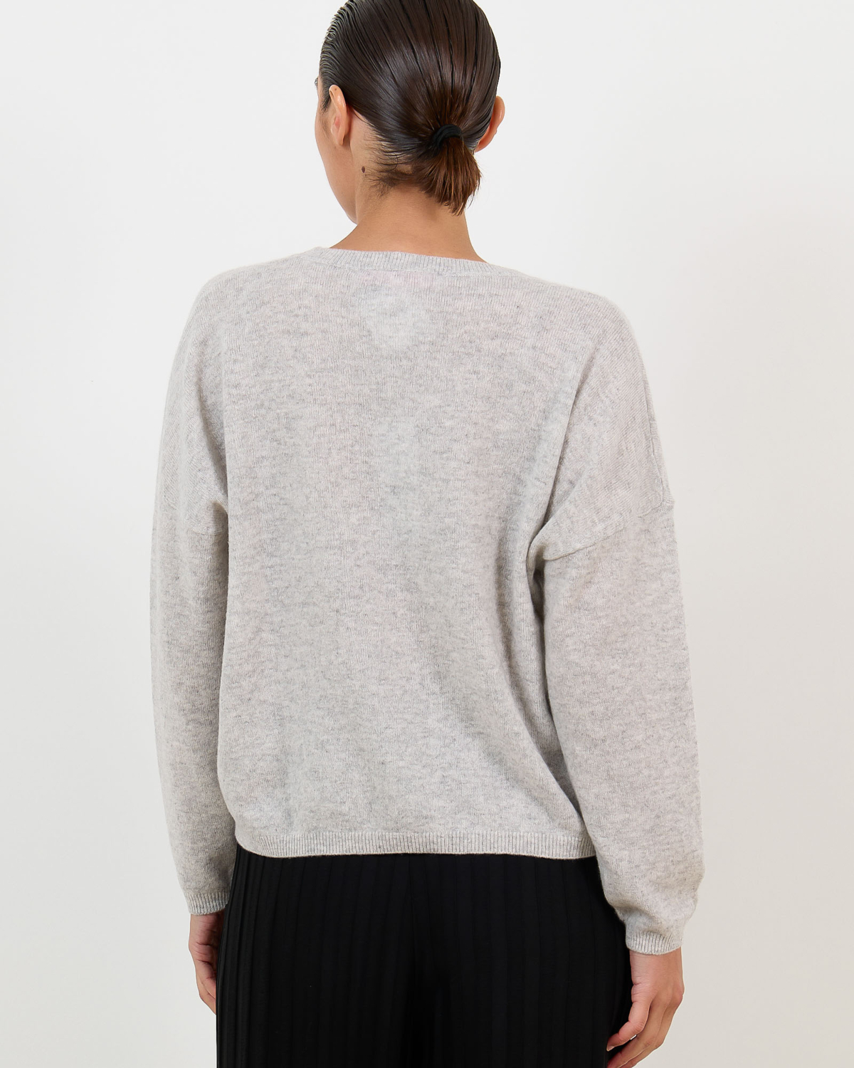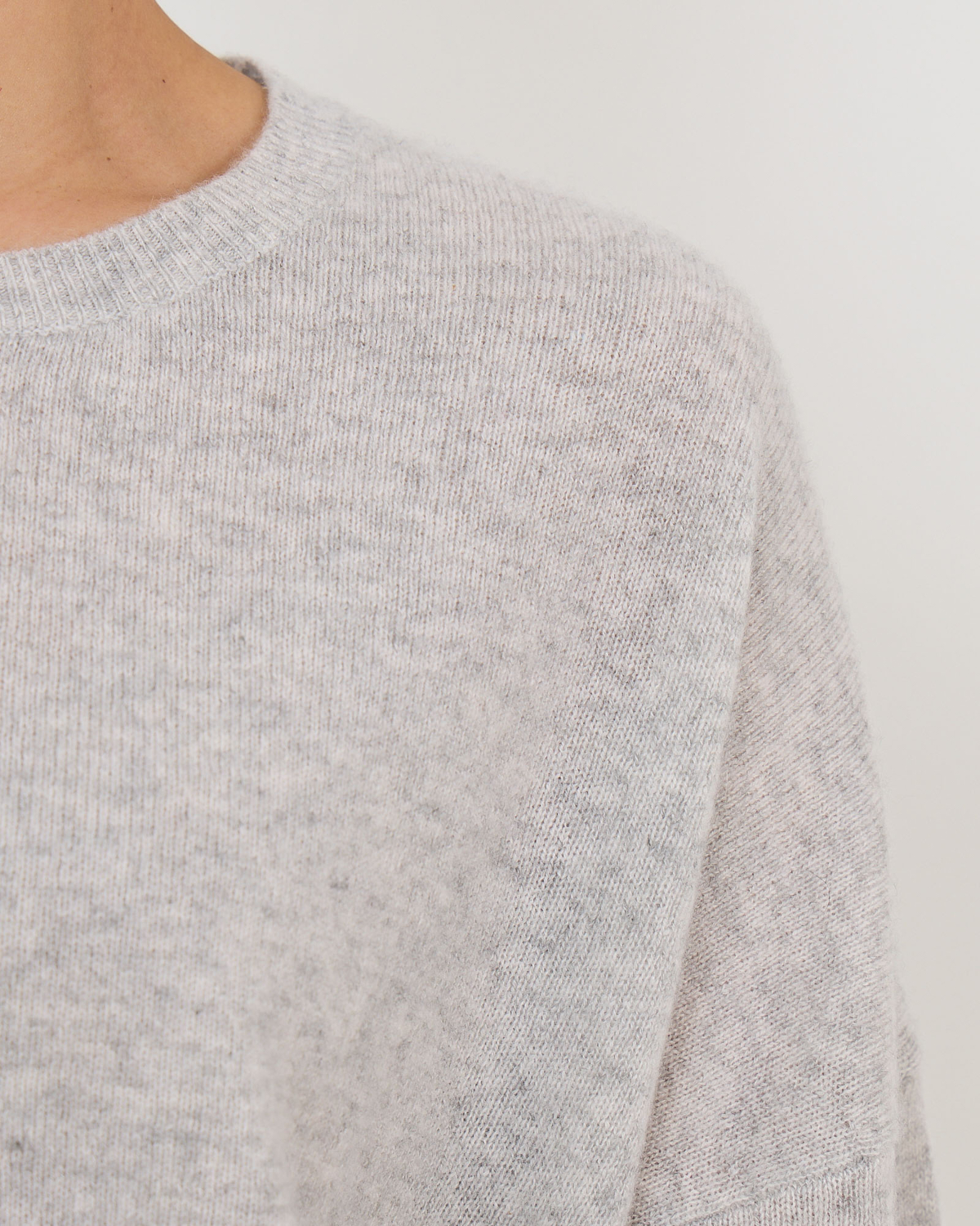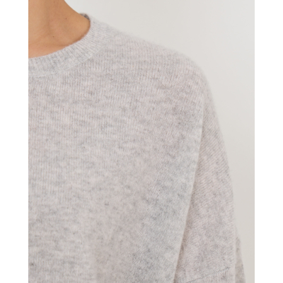 This elegant grey cashmere sweater brings pure luxury to your women's clothing collection. Crafted from 100% cashmere by Absolut Cashmere, the Kaira features a relaxed fit with long sleeves and a classic crew neckline. The sophisticated light grey mêlée shade creates a refined foundation for your wardrobe. The ribbed neckline, cuffs, and hem provide structure while maintaining the sweater's comfortable, loose silhouette.