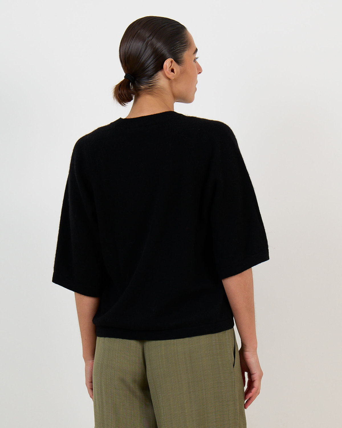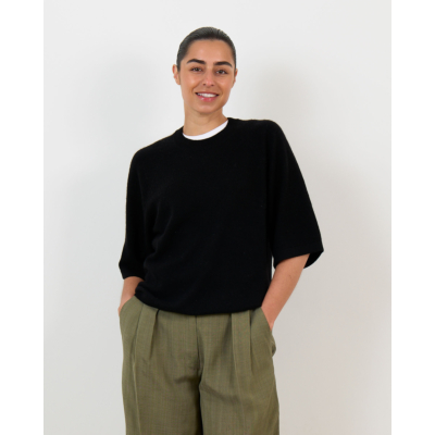 This sophisticated black cashmere sweater combines luxury with contemporary design. The relaxed fit creates a modern silhouette while the premium 100% cashmere fabric delivers unmatched softness and warmth. Featuring three-quarter sleeves and a classic crew neckline, this piece from Absolut Cashmere brings effortless elegance to your women's clothing collection. The rich black tone makes it a versatile foundation piece that transitions beautifully from day to evening.