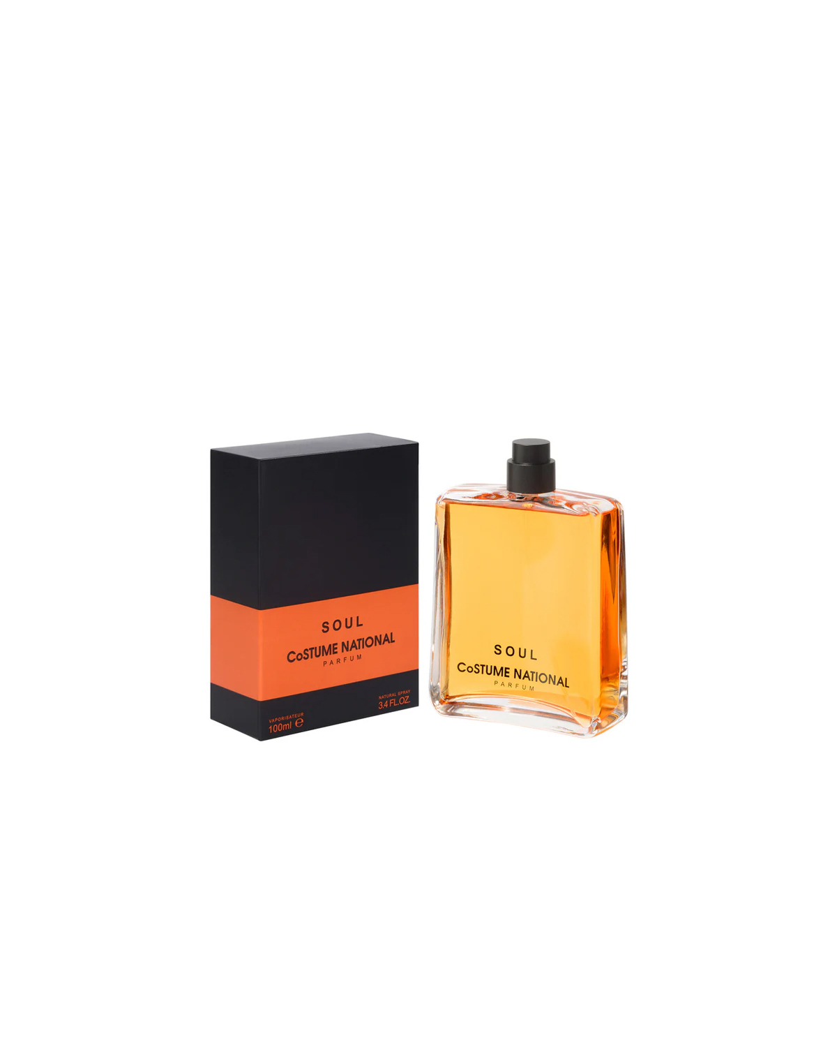 This sophisticated fragrance presents itself in a striking oranje hue, housed within a sleek rectangular glass bottle. The minimalist design features clean lines and a black spray cap that creates an elegant contrast. The transparent glass showcases the rich amber-toned liquid beautifully, while the simple typography displays the Soul branding prominently on the front panel.