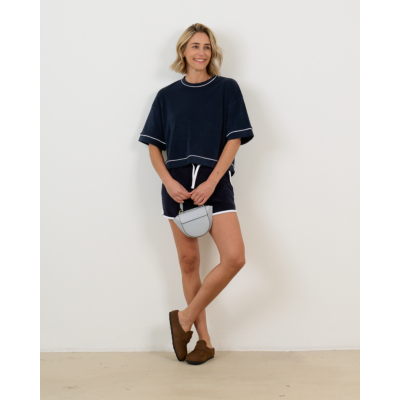 Pair this Ame Antwerp tee with tailored trousers and sneakers for an elevated casual look, or style it with a blazer and jeans for contemporary sophistication. The crisp white piping details make it perfect for layering under cardigans or wearing solo with matching shorts for a coordinated ensemble.