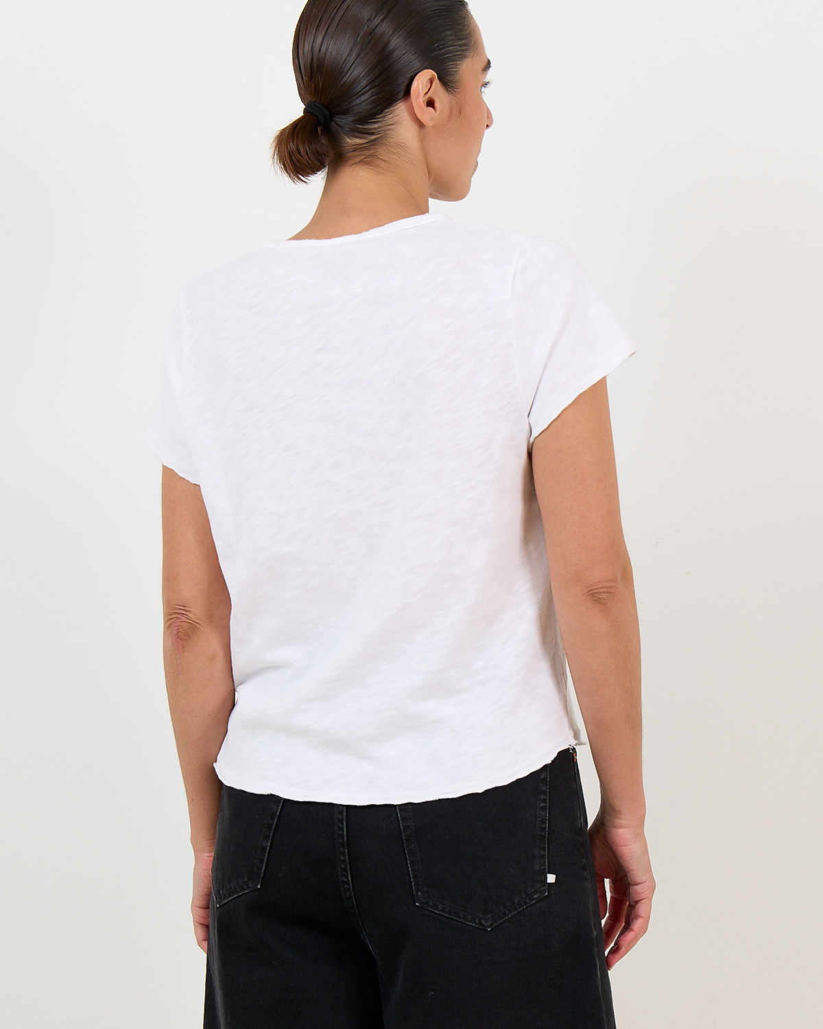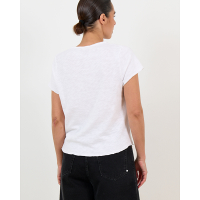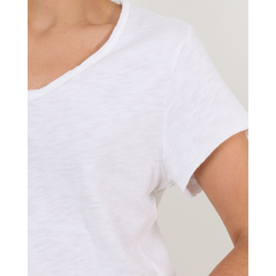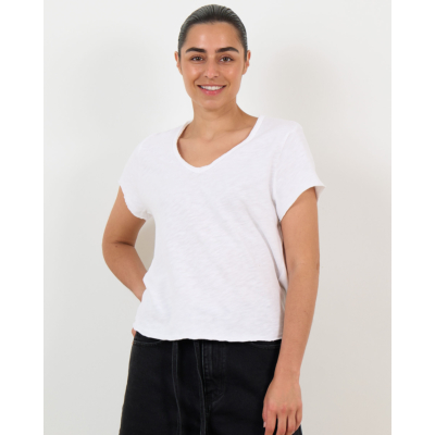 This white heathered v-neck t-shirt showcases the perfect blend of comfort and contemporary style. Crafted from 100% cotton, the relaxed fit creates a comfortable silhouette that moves with you throughout the day. The v-neckline adds a flattering touch, while the short sleeves and heathered texture bring modern appeal to this wardrobe essential. American Vintage delivers quality women's clothing with this versatile piece that combines laid-back elegance with timeless design. Style this white tee with high-waisted jeans for a classic casual look, or layer it under a blazer for smart-casual occasions.