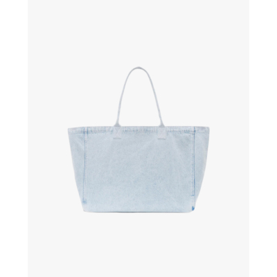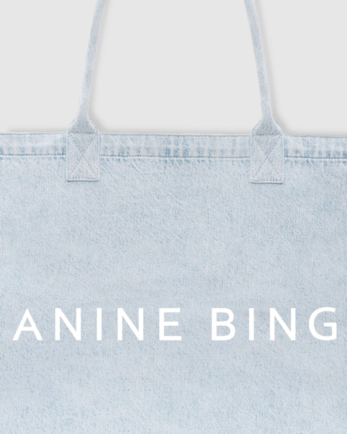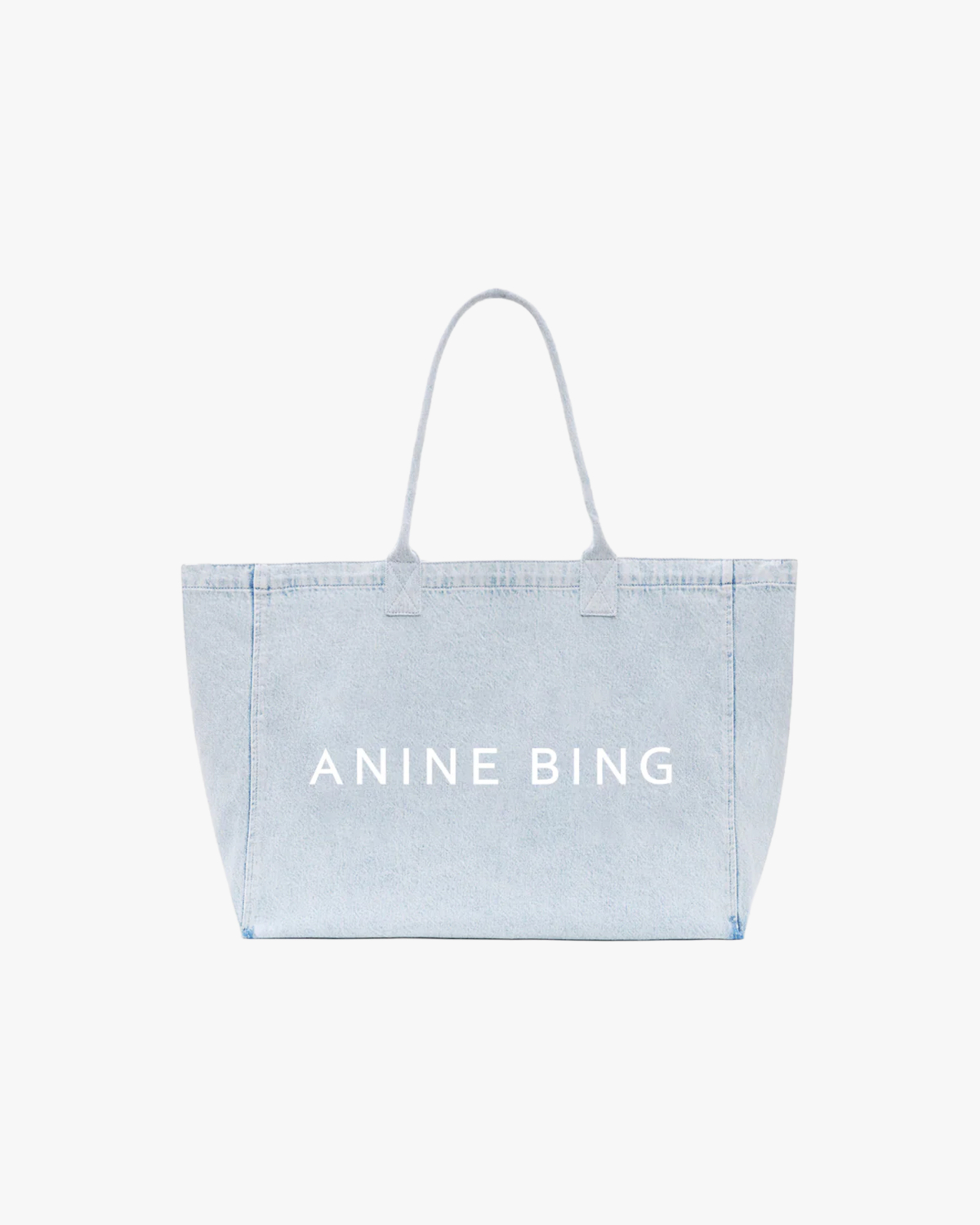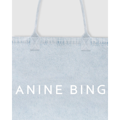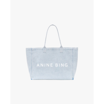 This light blue denim tote bag combines timeless style with contemporary elegance. Crafted from 100% cotton, the spacious design features classic denim stitching and matching handles for comfortable carrying. The front showcases the signature ANINE BING logo in crisp white lettering. This versatile women's clothing accessory offers a structured silhouette with a clean finish that elevates any ensemble. By Anine Bing, this piece embodies refined casual luxury.
