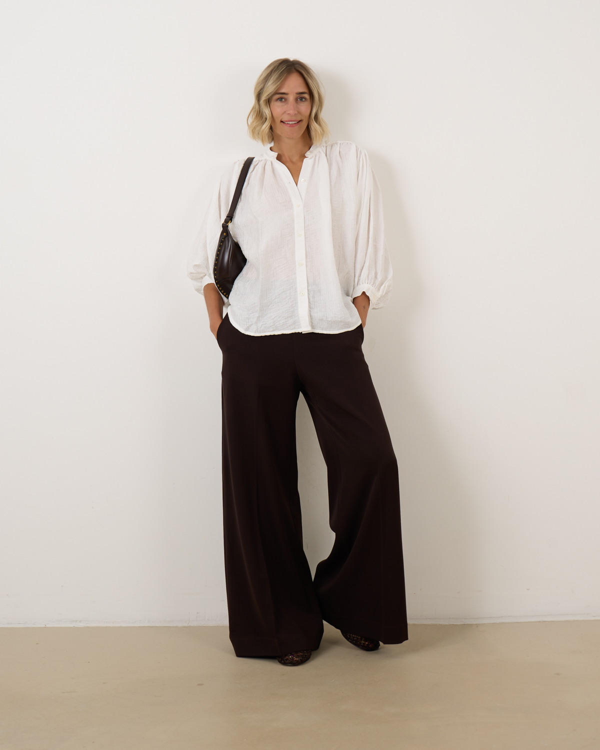 Woody pantalon van het merk Sea me Happy komt in de kleur marine. De pantalon heeft een elastische tailleband en steekzakken.