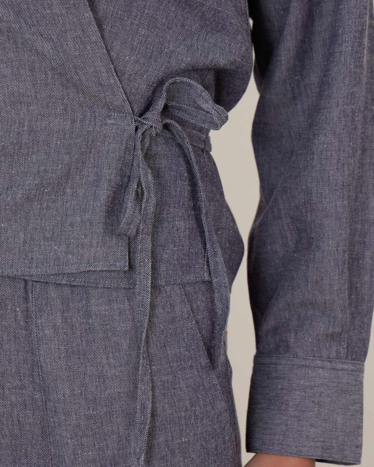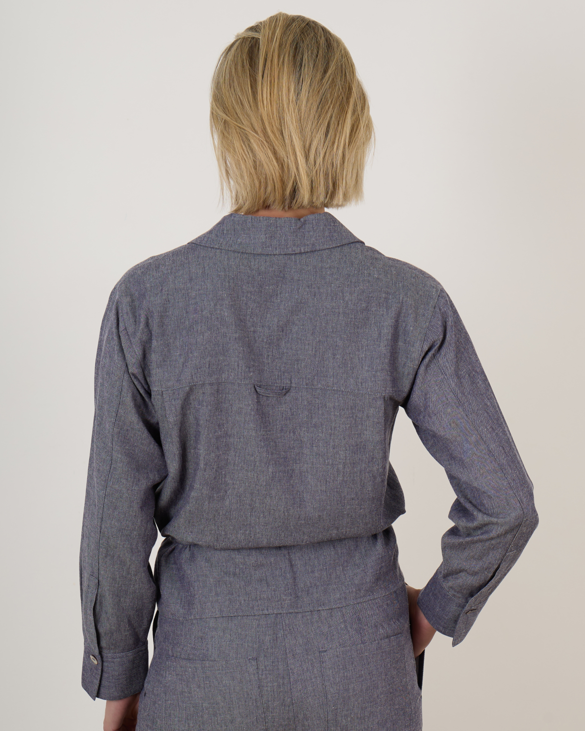 De Collared Wrap Top van Vince in mid indigo biedt de denimlook zonder het gewicht. Gemaakt van een lichte Italiaanse twill met viscose, linnen en nylon voor een ademend en soepel gevoel – ideaal voor warmere dagen. Het wikkelmodel sluit elegant met strikband aan de zijkant en heeft manchetten met een enkele knoop.