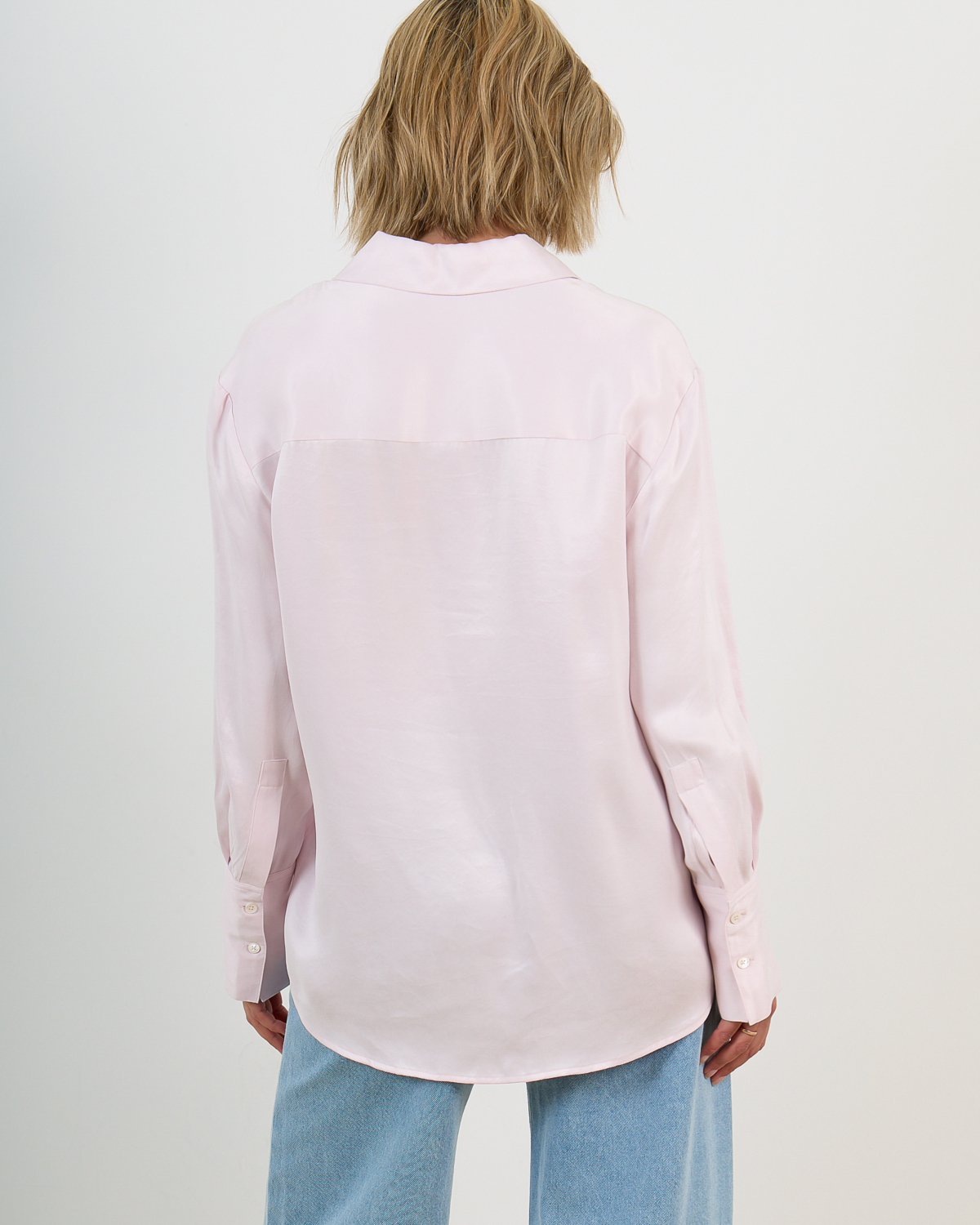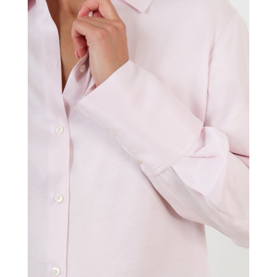 This elegant pink women's clothing piece from Anine Bing combines sophistication with contemporary style. The relaxed-fit silhouette features a classic collar and full button closure with matching pink buttons. Crafted from a premium 71% lyocell and 29% viscose blend, this long-sleeved blouse offers exceptional comfort and breathability. The soft pink hue creates a refined feminine touch that elevates any outfit.