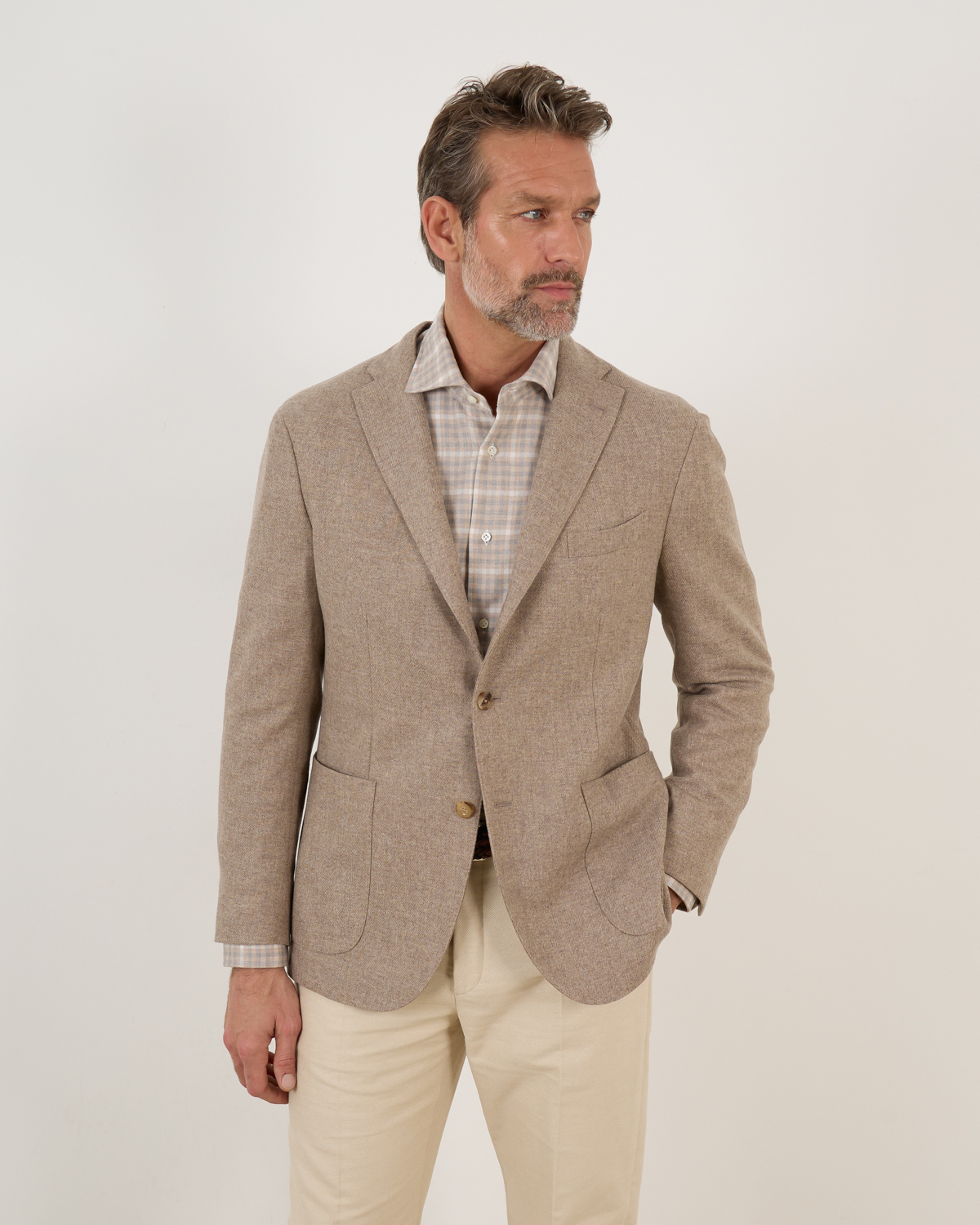 Ontdek de verfijnde elegantie van dit casual colbert van het merk Boglioli. De jacket is voorzien van klassieke details, waaronder een enkele borstzak en twee opgezette zakken, terwijl de combinatie van het wollen materiaal zorgt voor een moderne, luchtige uitstraling. Dankzij de mooie beigekleur is dit colbert een aanwinst voor jouw garderobe.
