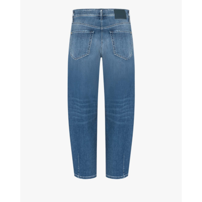 These cropped jeans in medium blue showcase authentic vintage styling with sophisticated design details. The regular fit silhouette features distinctive front panel seaming and a comfortable high waistband with button closure. Crafted from premium cotton blend fabric (92% cotton, 8% elastane), these women's clothing essentials deliver both comfort and structure. The medium blue wash creates a versatile foundation, while the cropped length adds contemporary appeal to this Cambio design.