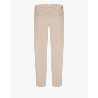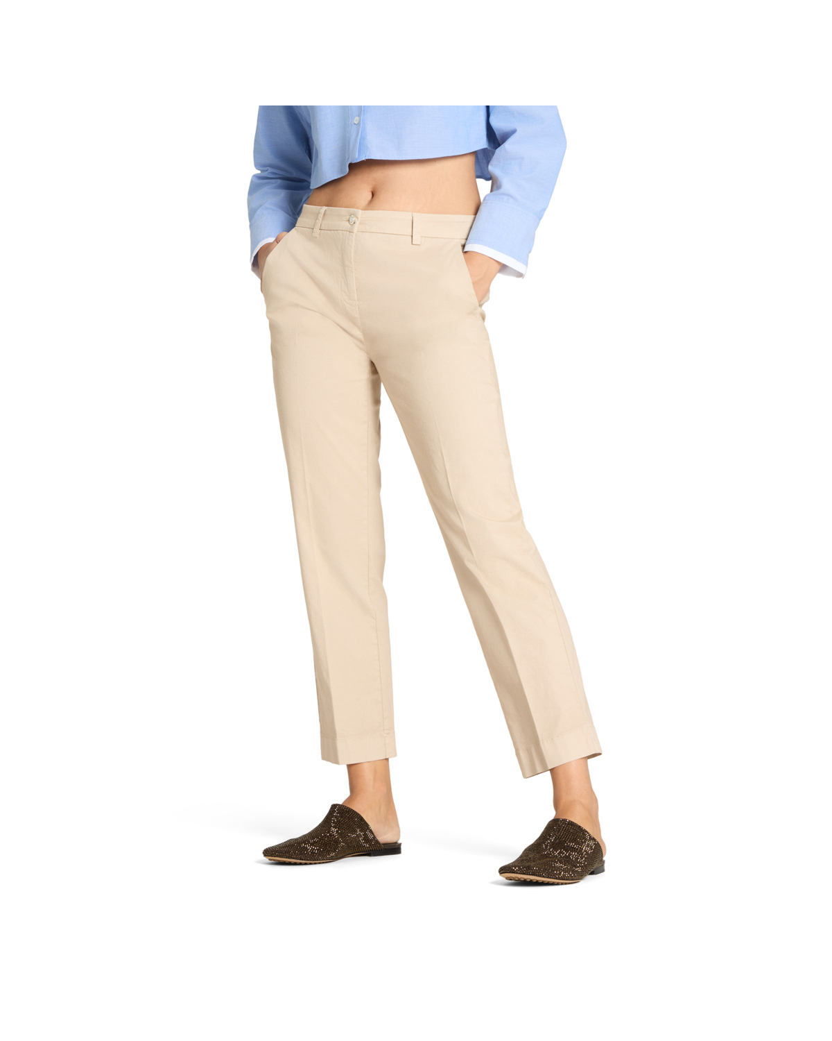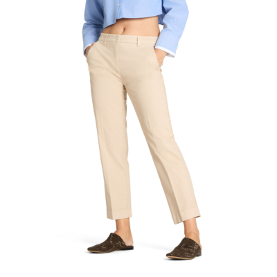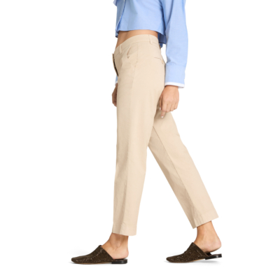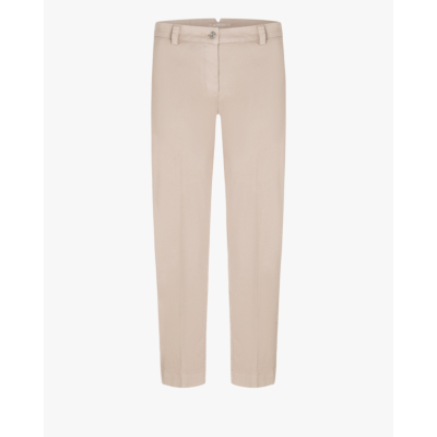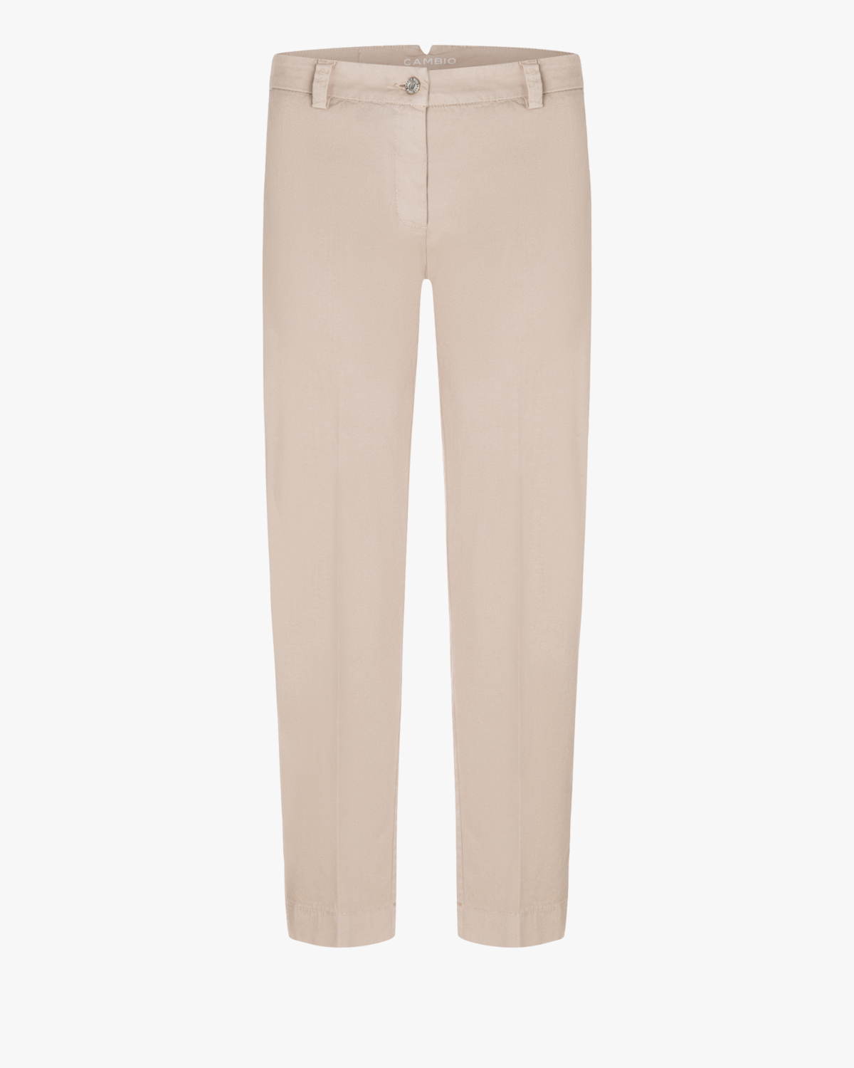These sophisticated sand-colored trousers represent modern women's clothing at its finest. The regular fit design features a classic button closure and belt loops for versatile styling. Crafted from a premium cotton blend of 97% cotton and 3% elastane, these Cambio trousers offer both structure and flexibility. The practical front and back pockets add functionality, while the pressed creases create a polished silhouette that transitions beautifully from day to evening.