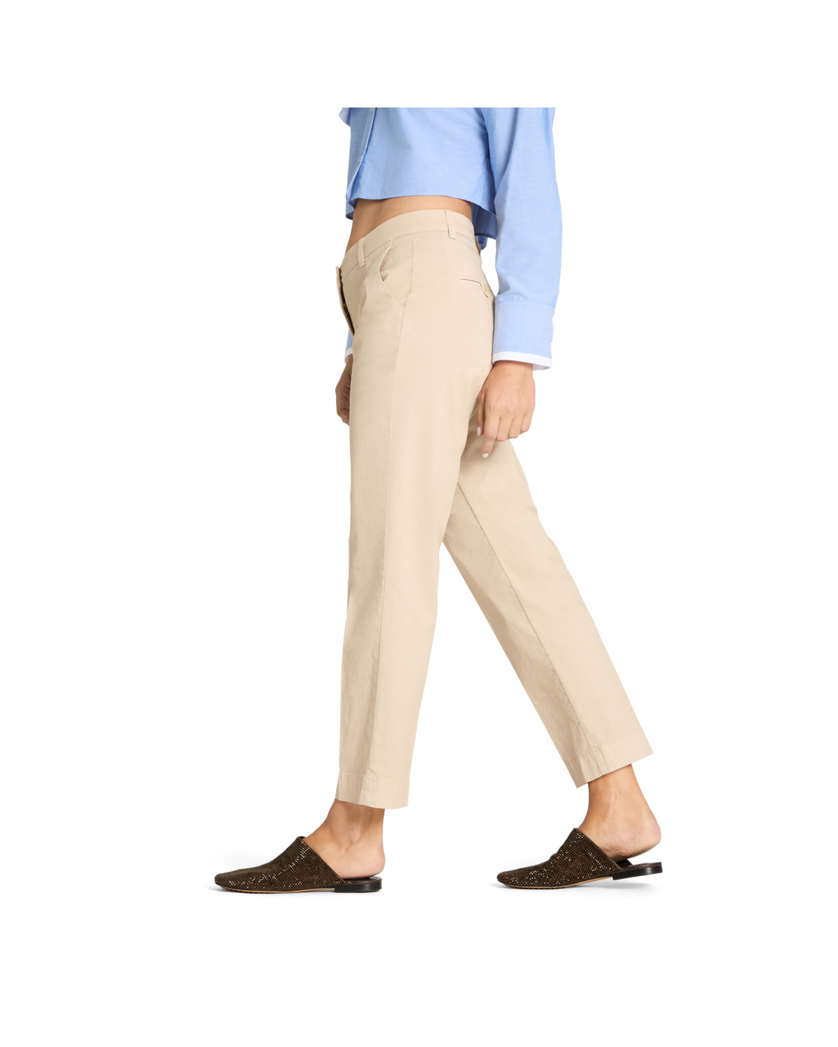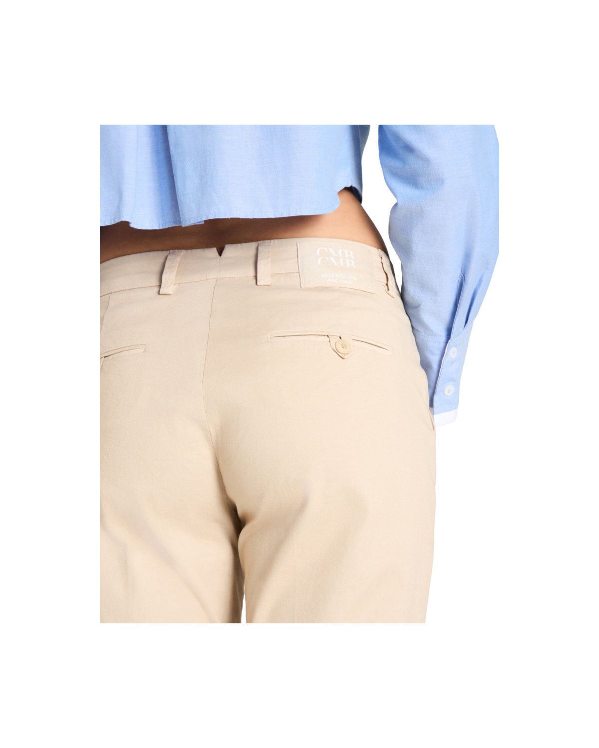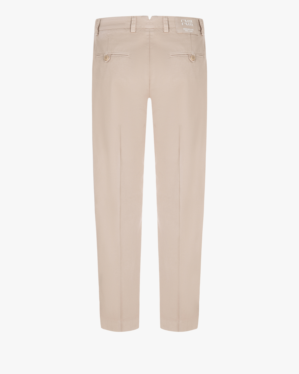 These sophisticated sand-colored trousers represent modern women's clothing at its finest. The regular fit design features a classic button closure and belt loops for versatile styling. Crafted from a premium cotton blend of 97% cotton and 3% elastane, these Cambio trousers offer both structure and flexibility. The practical front and back pockets add functionality, while the pressed creases create a polished silhouette that transitions beautifully from day to evening.