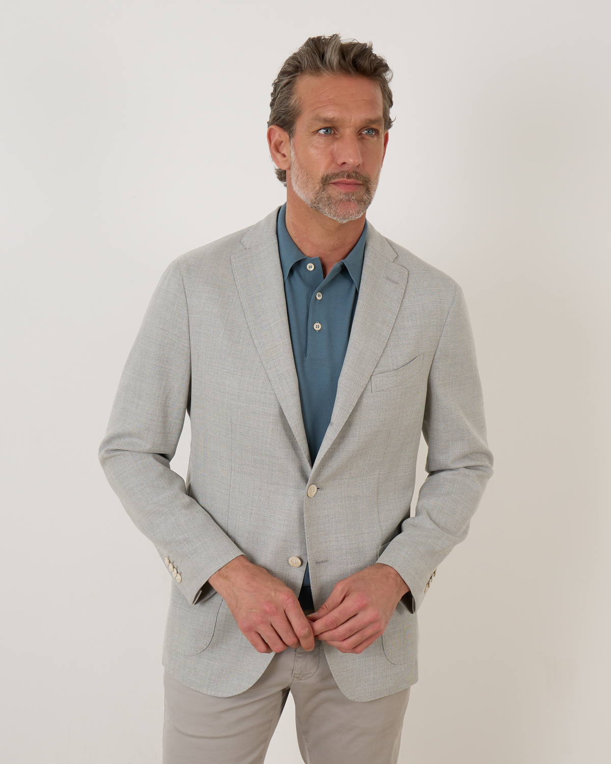 Casual colbert van het merk Boglioli in de kleur grey. Het colbert is ongevoerd en is voorzien van drie single-breasted knopen, opgestikte zakken aan de voorkant en een enkele borstzak. Verder is het slanke colbert afgewerkt met twee splitten in het achterpand.