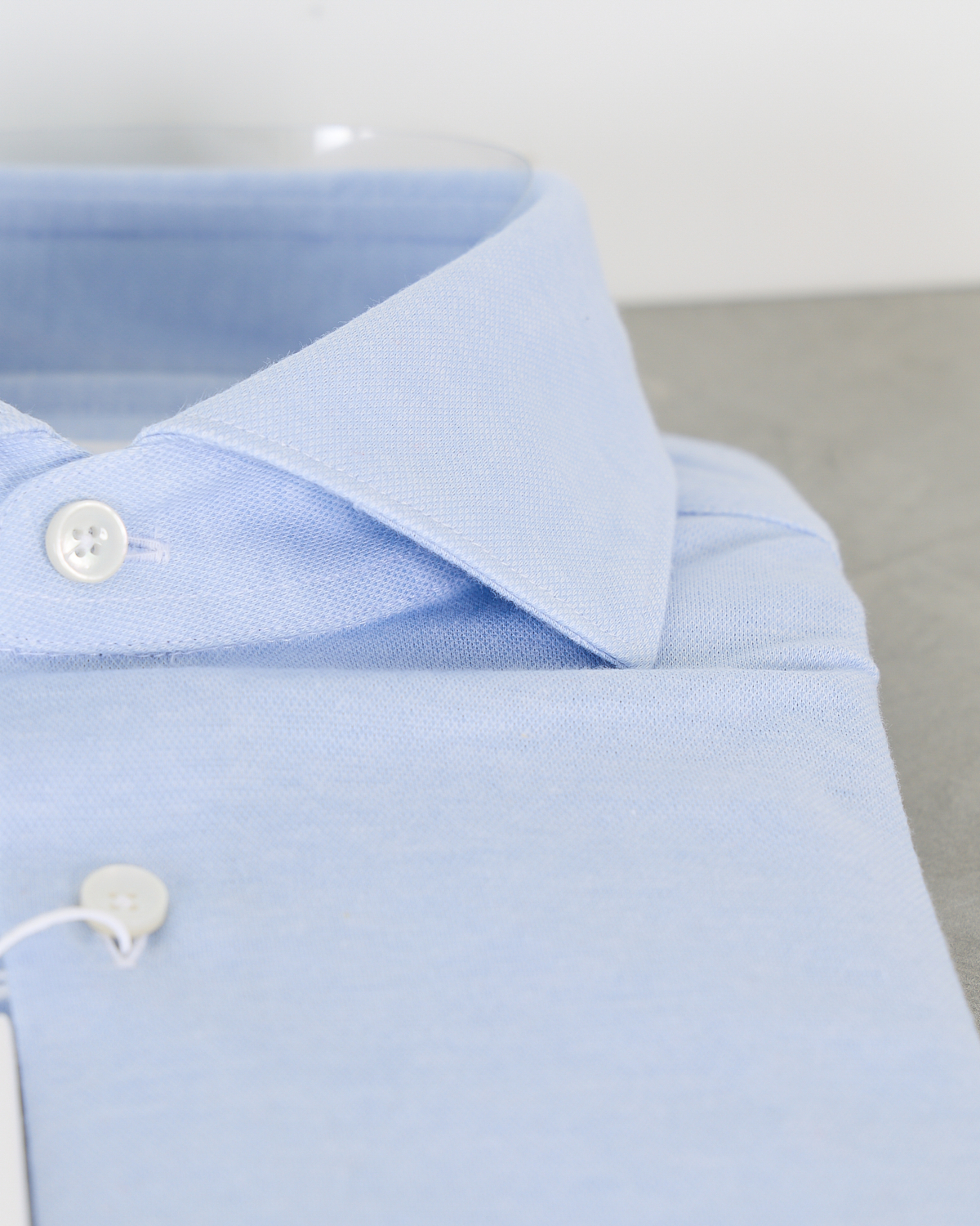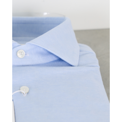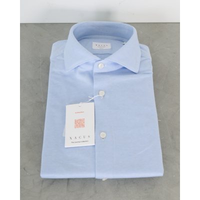 This blue long sleeve shirt from Xacus redefines comfort in men's clothing. Crafted from 100% cotton with a knitted construction, the fabric feels soft against your skin while maintaining its refined appearance. The classic spread collar and button-down front create a polished silhouette, while the long sleeves offer versatility for different seasons. The light blue shade brings freshness to your wardrobe.