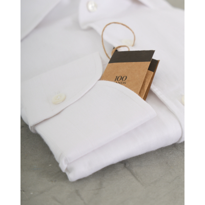This white long sleeve shirt from 100 Hands brings refined men's clothing to your wardrobe. Crafted from 100% linen, the natural fabric offers breathable comfort and a sophisticated texture. The classic spread collar and button-front closure create a timeless silhouette, while the regular fit ensures comfortable movement throughout the day. The crisp white tone provides versatile styling options for both business and casual occasions.