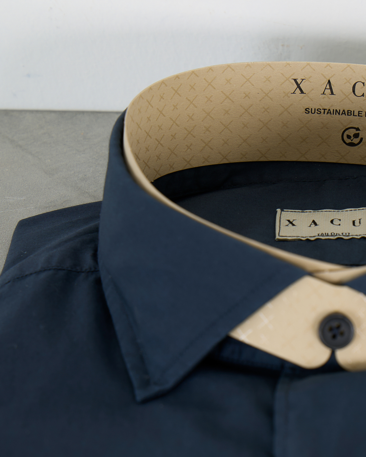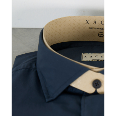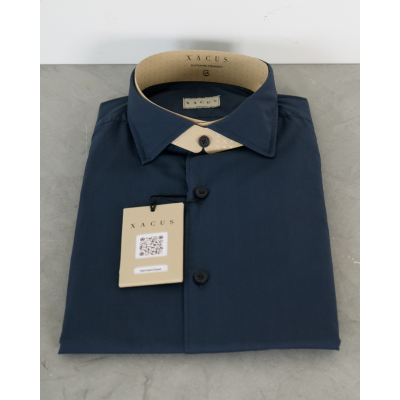 This refined men's clothing piece showcases a sophisticated teal shade that adds depth to your wardrobe. Crafted from 100% cotton by Xacus, the shirt features long sleeves and a classic spread collar with distinctive contrasting cream-colored inner details. The button-front closure creates a clean silhouette, while the premium cotton fabric ensures breathability and comfort throughout the day.