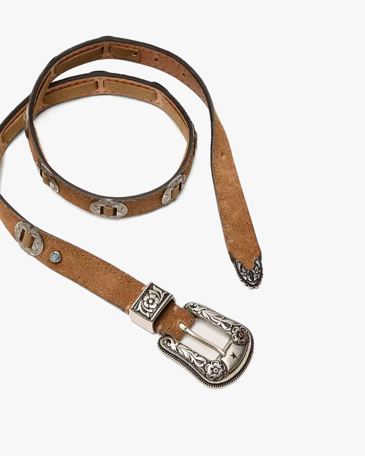 Style this statement belt over high-waisted trousers for a contemporary Western look, or cinch it around an oversized blazer to create definition. Pair with denim and boots for authentic ranch-inspired styling, or wear with flowing dresses to add structured contrast.
