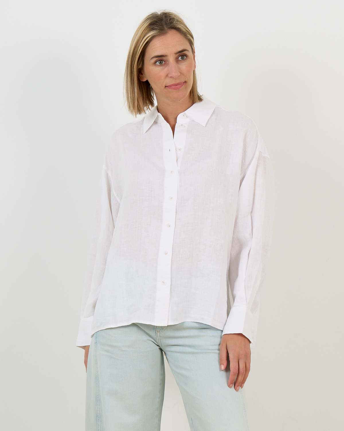 This crisp white long sleeve blouse from Closed embodies timeless sophistication. Crafted from 100% linen, this women's clothing piece features a classic collar and button-front closure with a relaxed regular fit. The natural texture of the linen fabric brings effortless elegance to any look, while the clean white tone creates endless styling possibilities. Perfect for both professional settings and weekend wear.