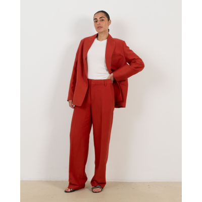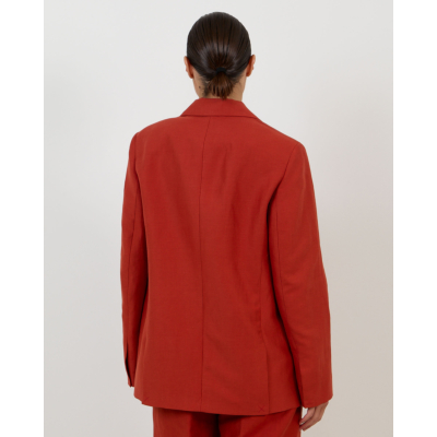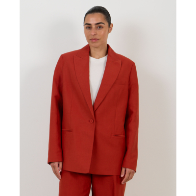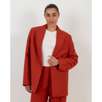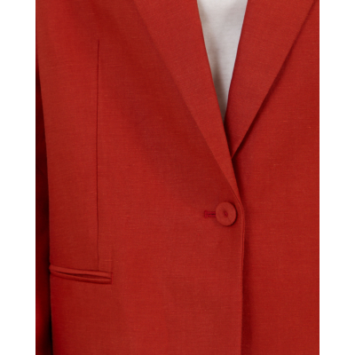 This striking red blazer makes a bold statement in contemporary women's clothing. Crafted from a premium blend of 54% linen, 23% viscose, and 23% polyester, this Closed piece features a relaxed fit with classic tailored details. The notched lapels and single-button closure create a refined silhouette, while the long sleeves and welt pockets add functional elegance. The vibrant red tone brings instant sophistication to any ensemble.
