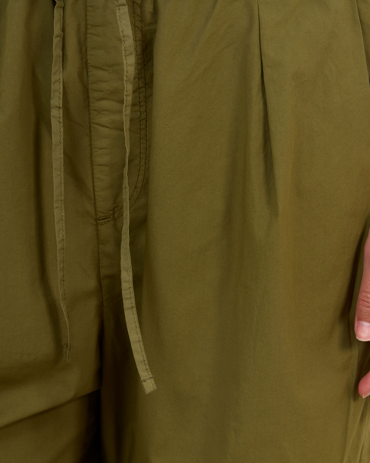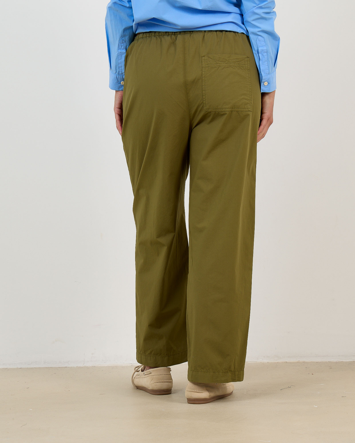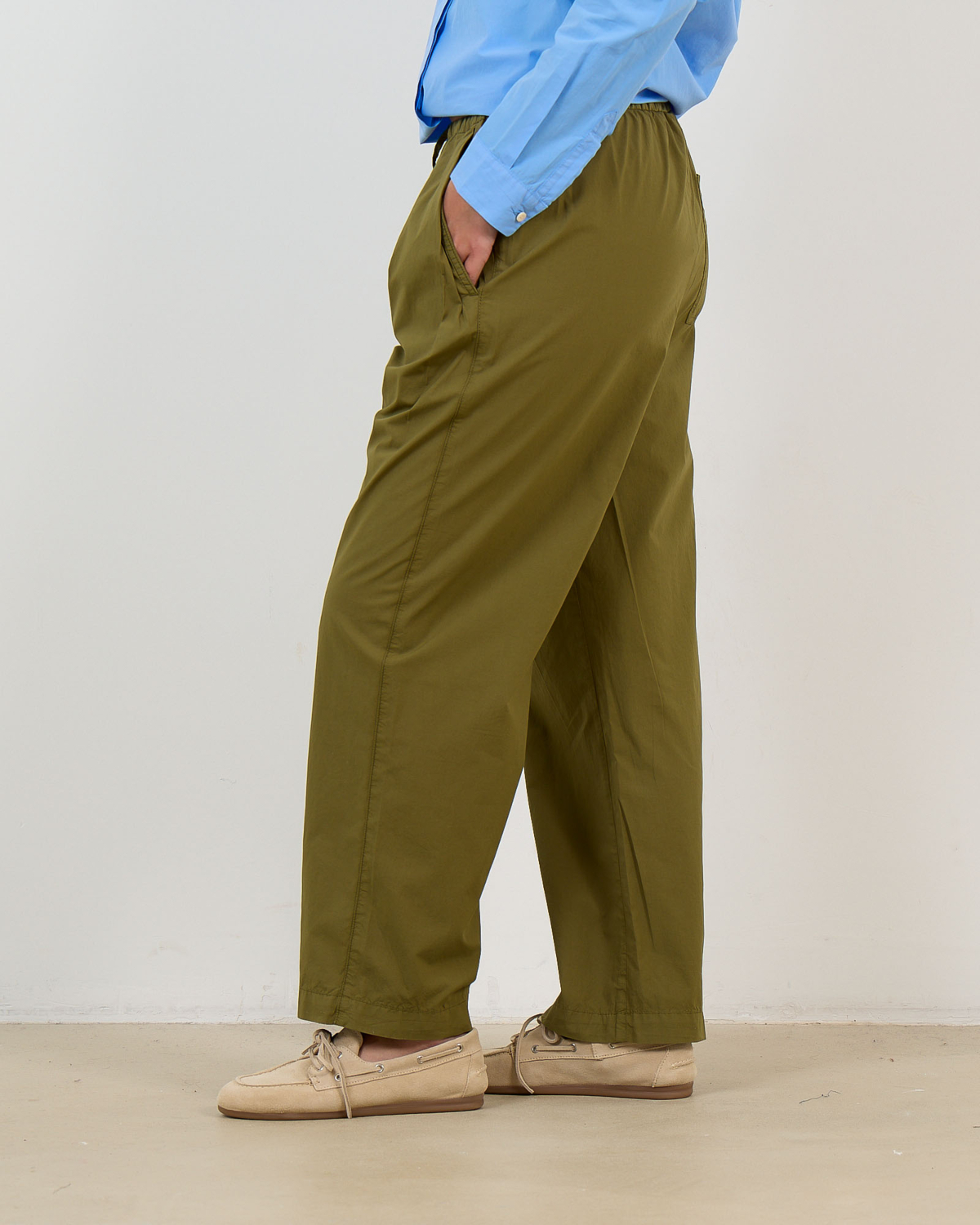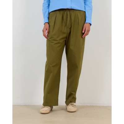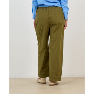 These relaxed-fit green poplin trousers from Closed offer contemporary comfort in a rich khaki green shade. Crafted from 100% cotton poplin, the trousers feature an elastic waistband with drawstring, practical side pockets, and a distinctive back patch pocket. The wide-leg silhouette and relaxed cut create an elegant drape that defines modern women's clothing with sophistication.