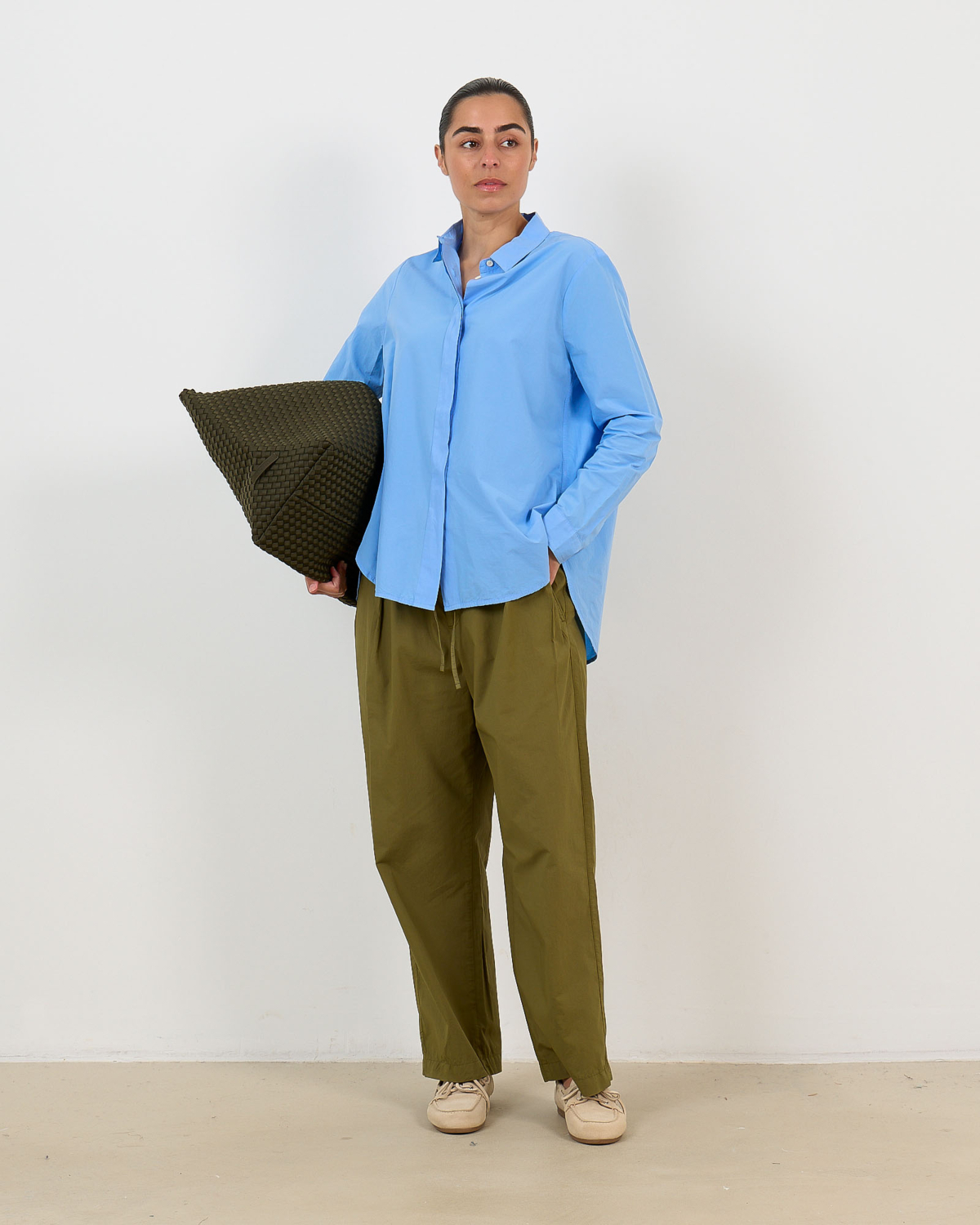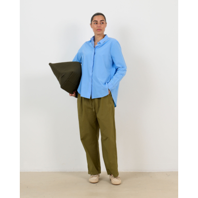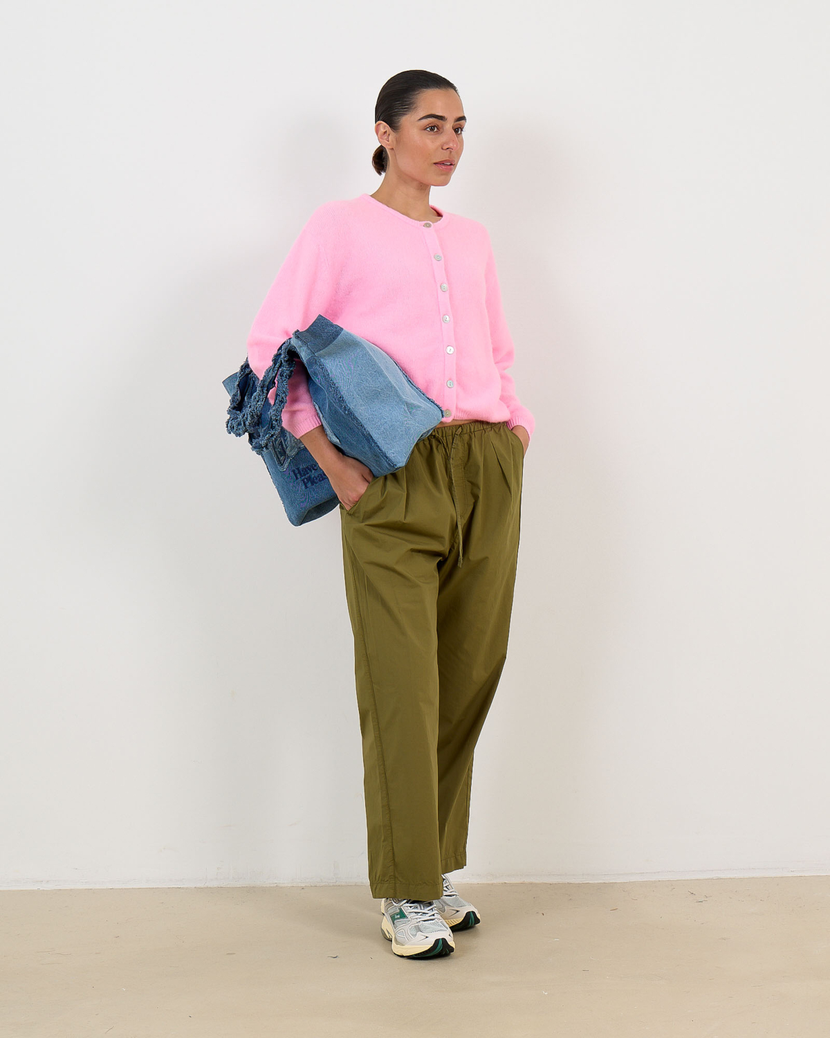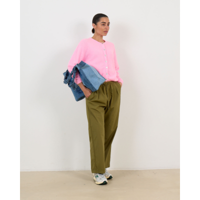 Style these versatile trousers with a crisp white shirt for polished daytime looks, or pair with a fitted blazer for elevated casual elegance. The neutral green tone complements cream knits beautifully, while the relaxed proportions balance perfectly with tailored tops and structured jackets.