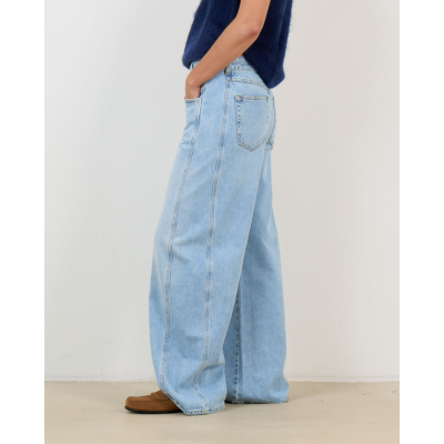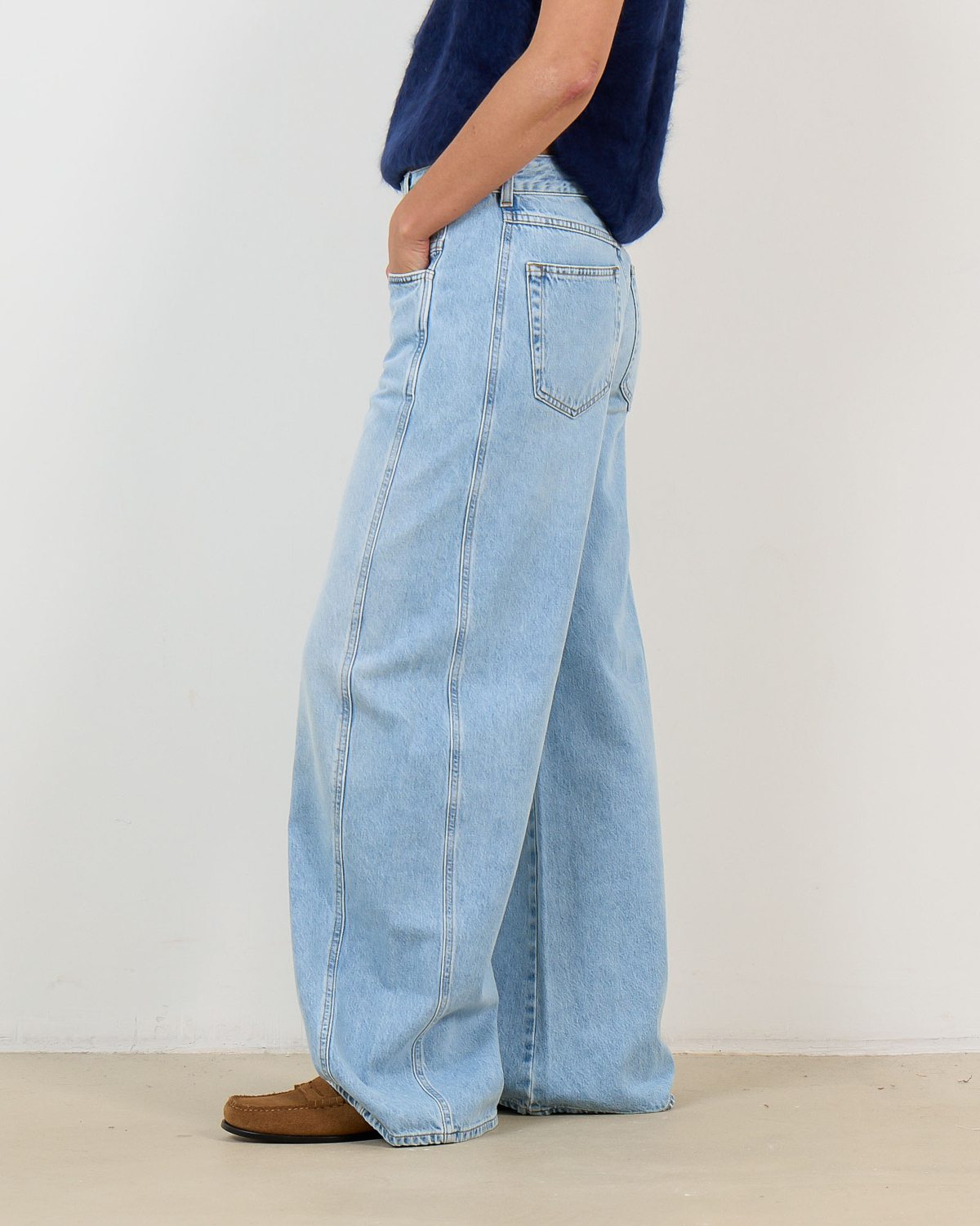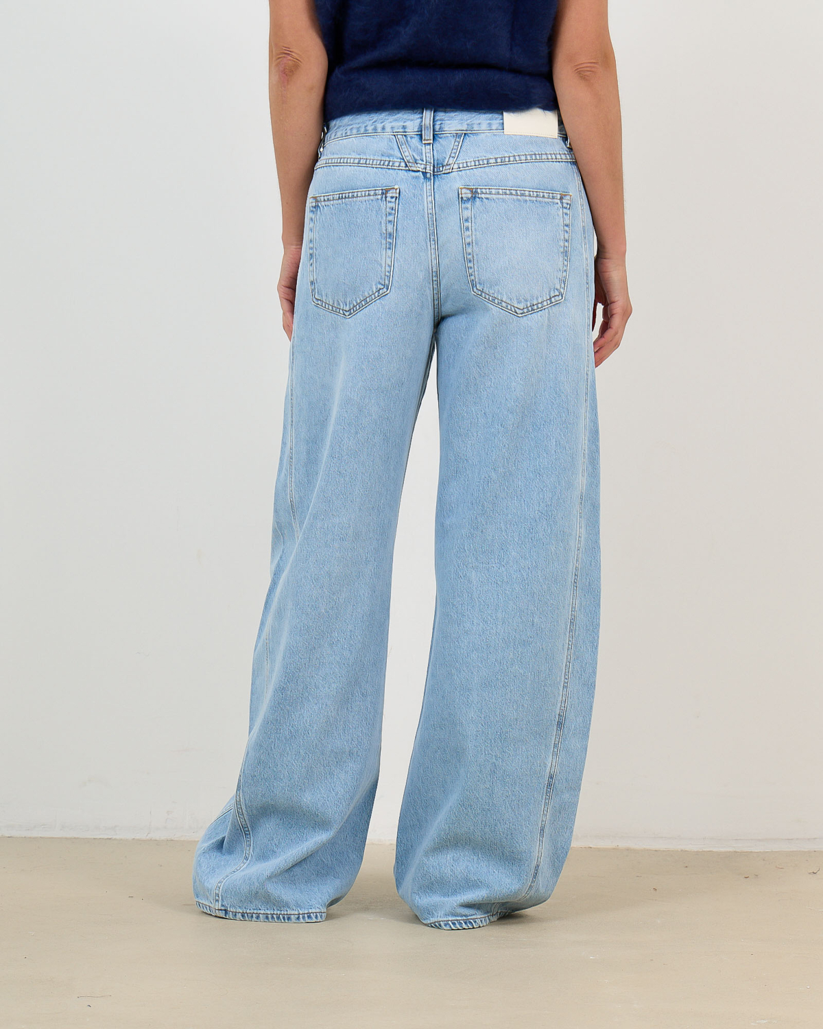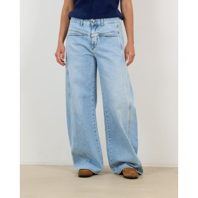 These light blue barrel jeans from Closed showcase a contemporary wide-leg silhouette that defines modern women's clothing. The regular fit features a high waist with button closure and classic five-pocket styling. Crafted from 80% cotton and 20% recycled cotton, these denim pieces offer both comfort and structure. The relaxed barrel shape creates an elegant drape while maintaining a refined aesthetic.
