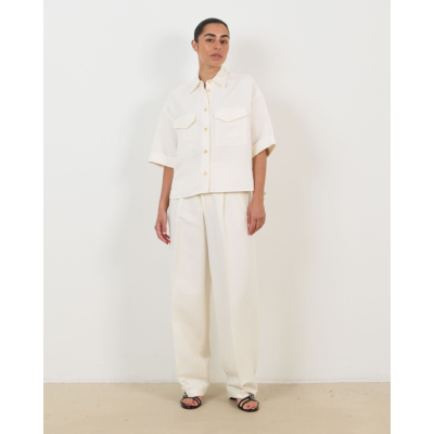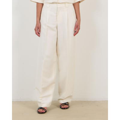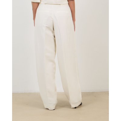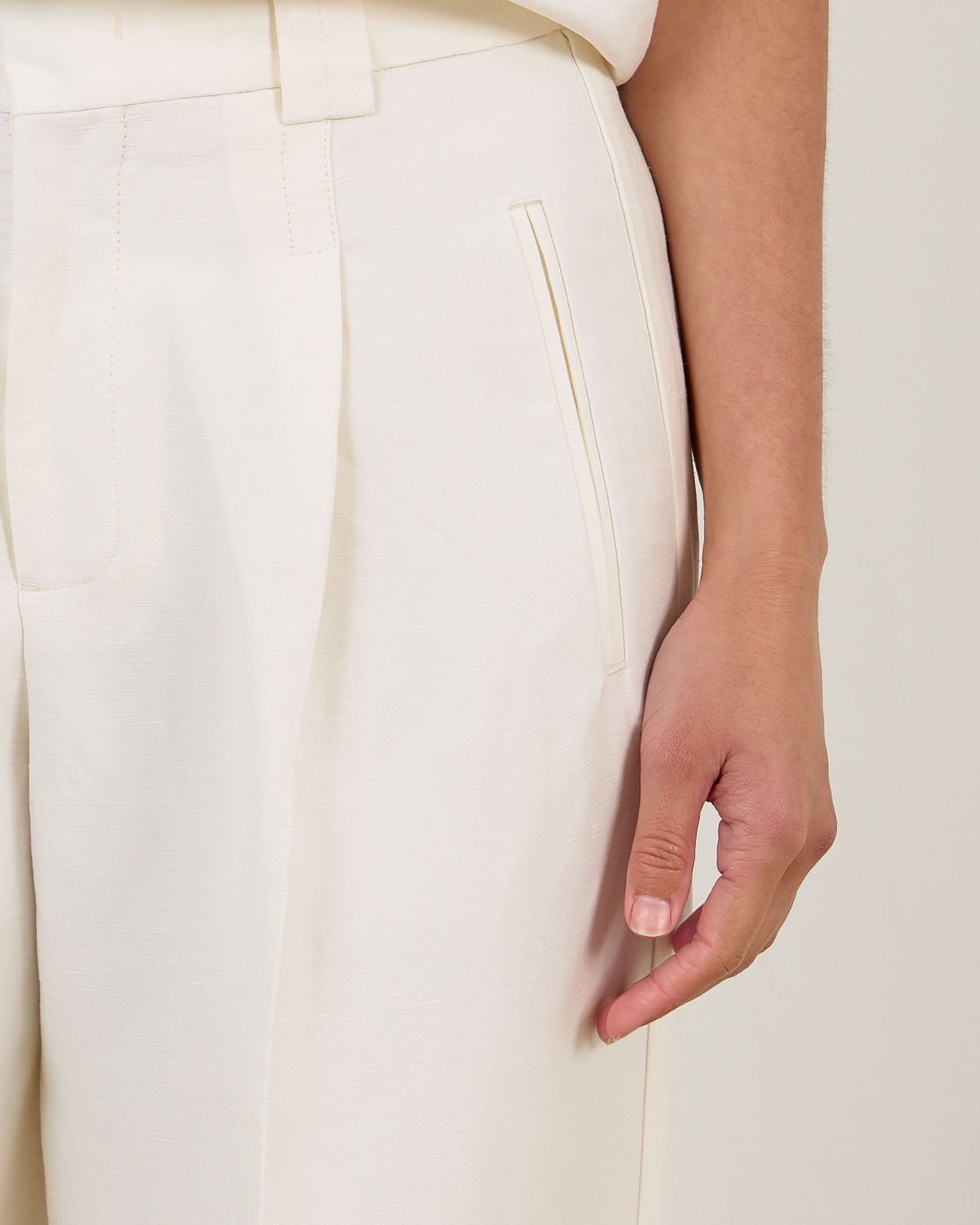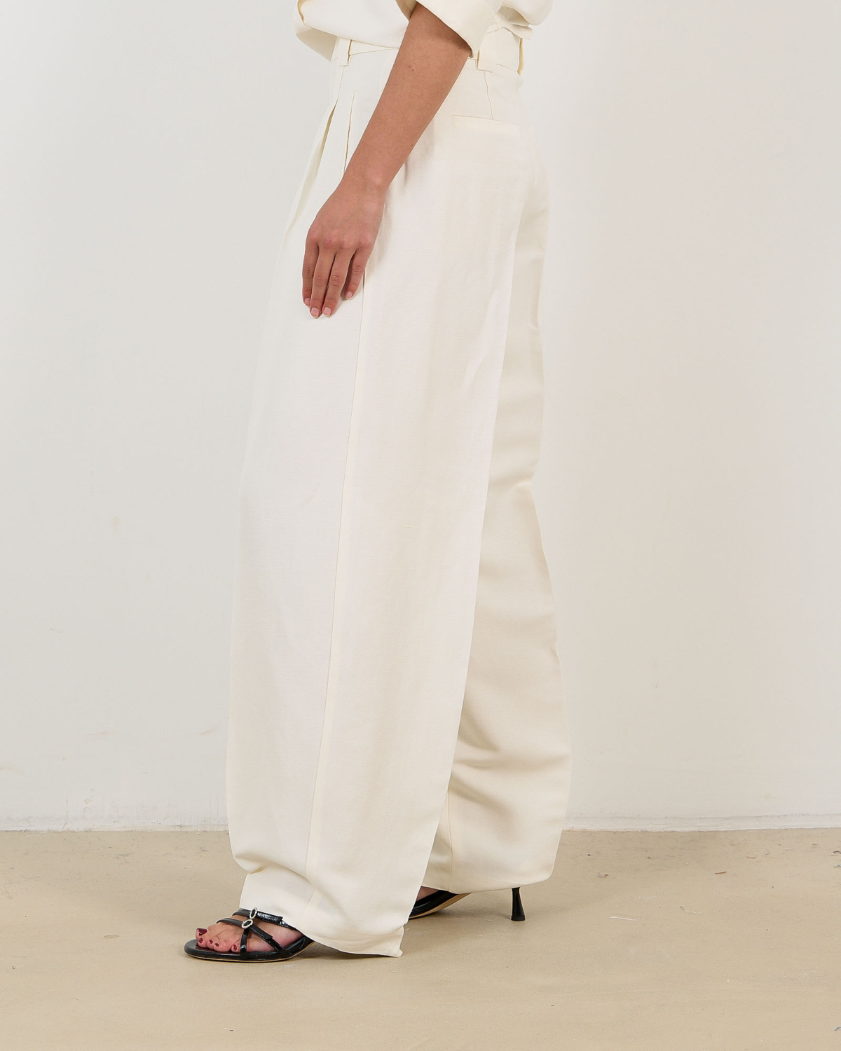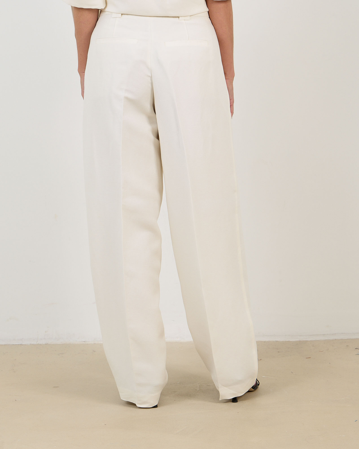 Perfect for creating sophisticated looks, pair these barrel trousers with a fitted blazer for professional settings or style with a cropped knit for weekend elegance. The neutral off white shade complements both bold statement pieces and subtle earth tones beautifully.