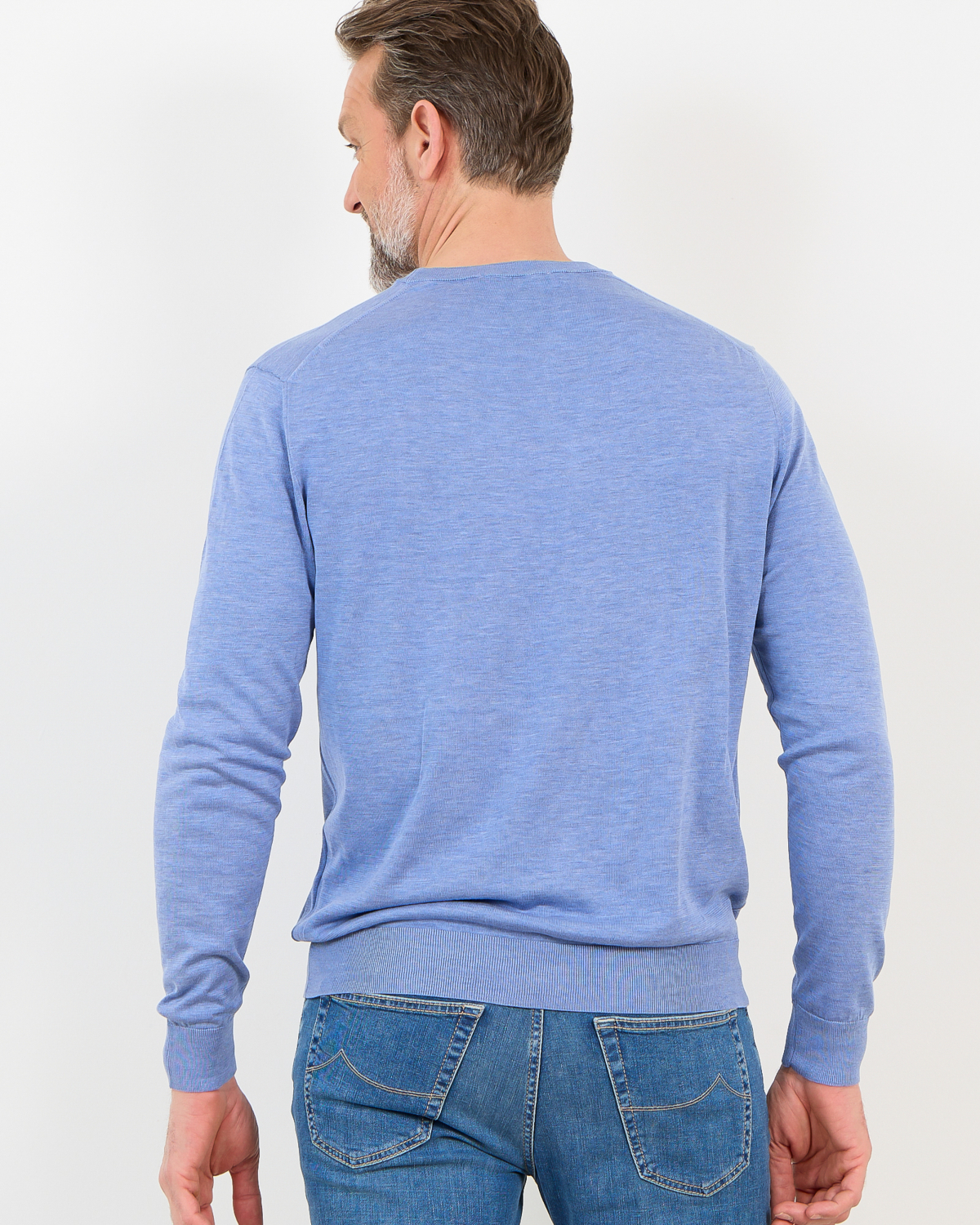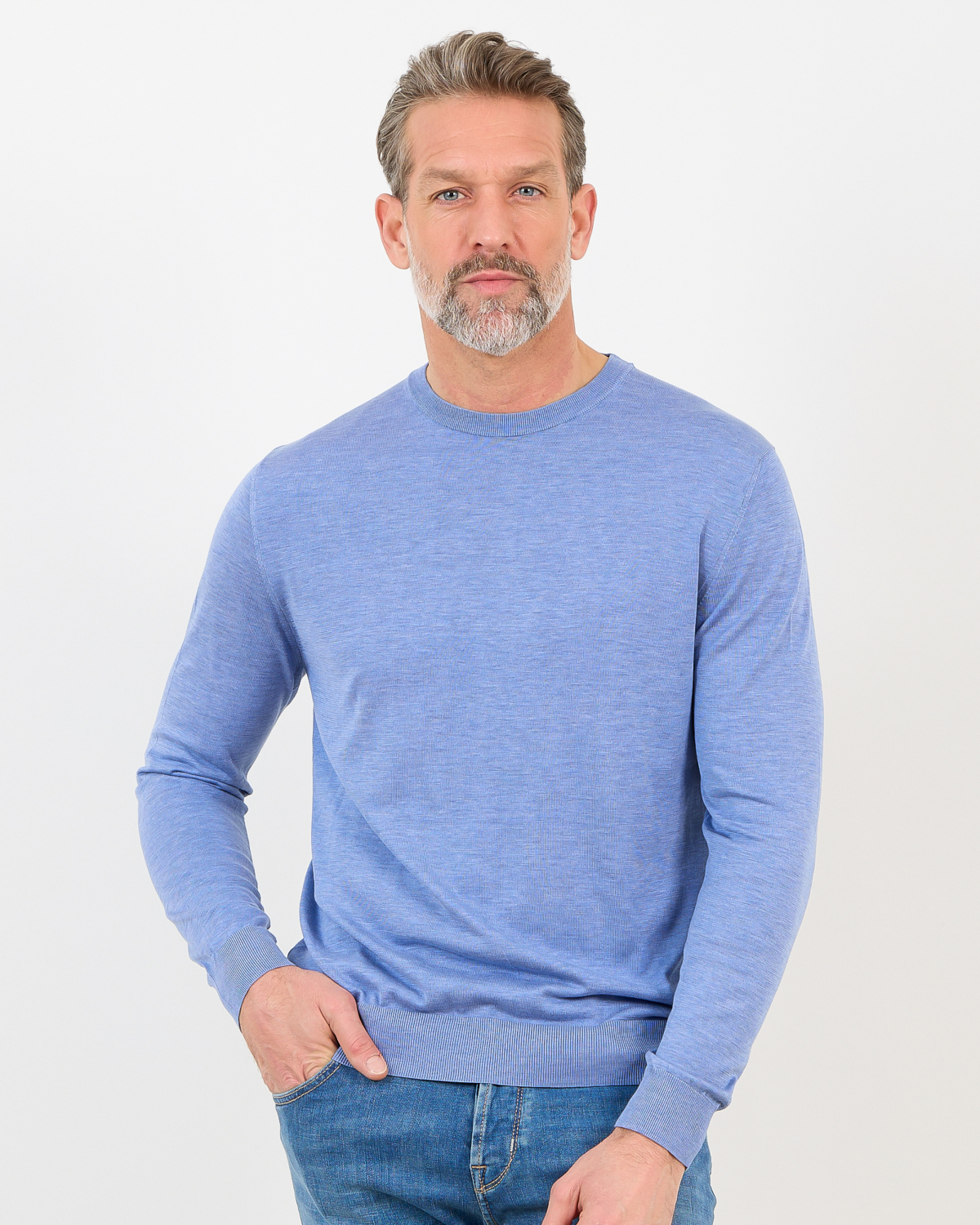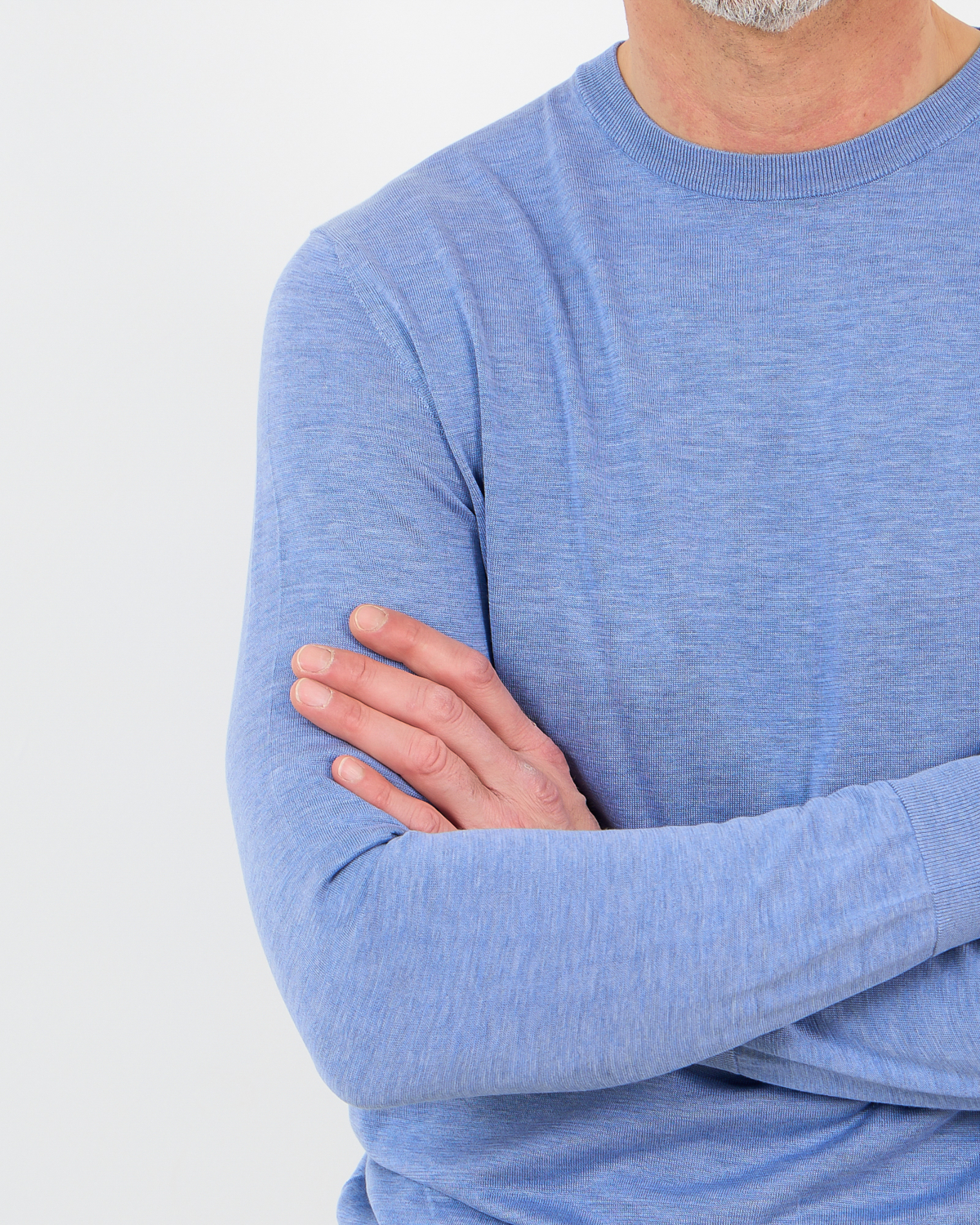 This refined ink blue pullover combines luxury and comfort with its premium silk-cotton blend fabric. The 62% silk and 38% cotton composition creates a soft, breathable texture that feels sophisticated against your skin. Featuring long sleeves and a classic crew neck, this regular fit sweater offers a clean, streamlined silhouette. The ribbed neckline, cuffs, and hem provide structure and shape retention. Crafted by Doriani Cashmere, this men's clothing essential represents Italian craftsmanship at its finest.
