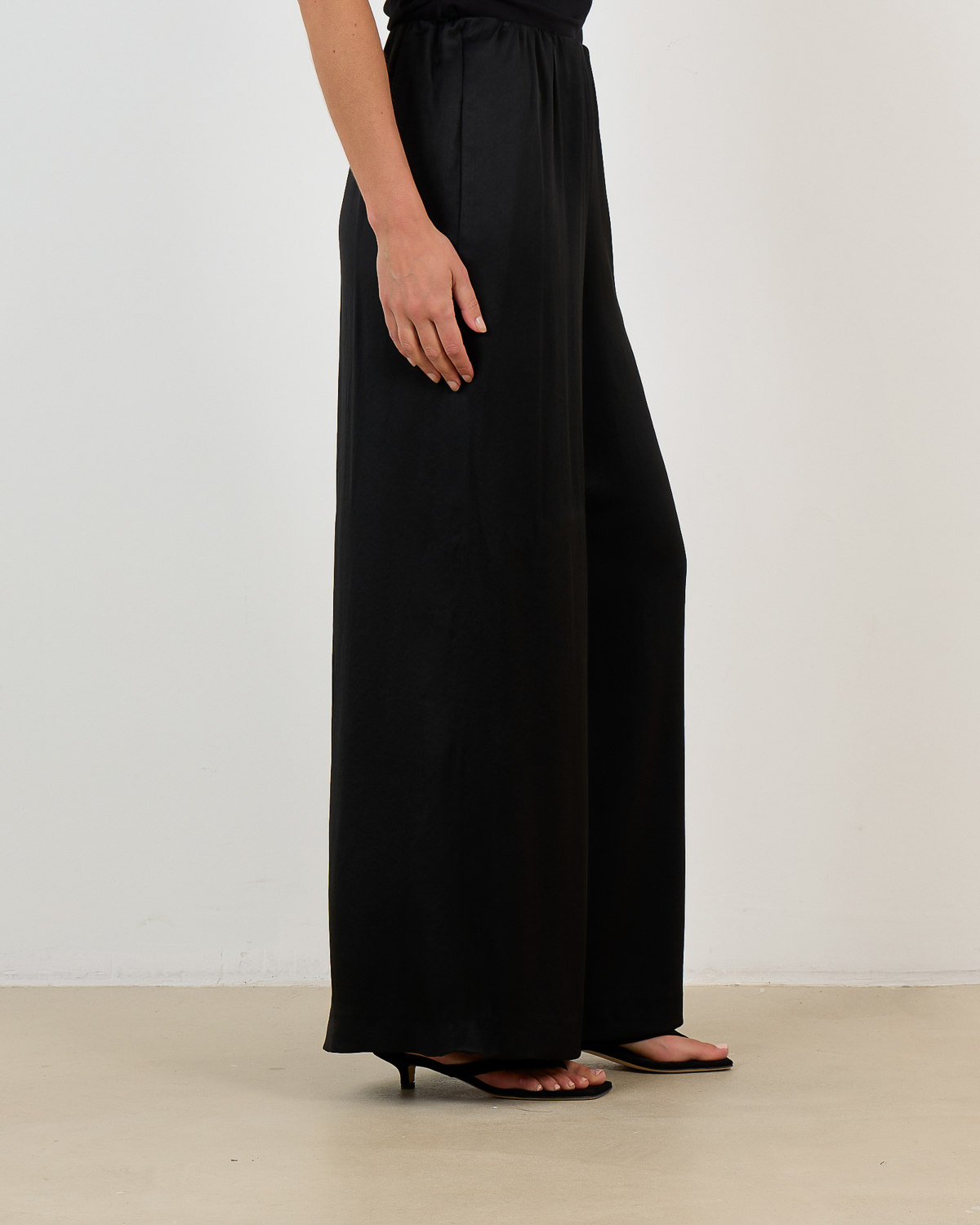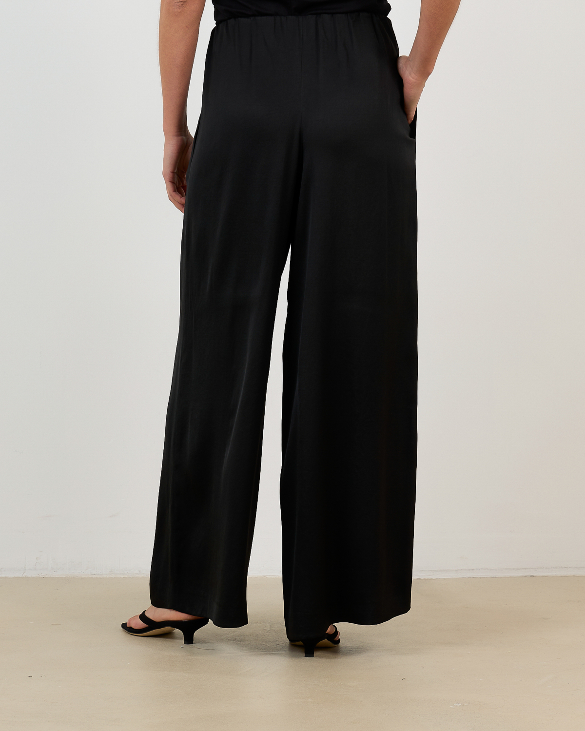 Style these versatile black trousers with a fitted white blouse for office elegance or pair them with a silk camisole for evening sophistication. The wide-leg cut creates stunning proportions when combined with pointed-toe heels or sleek ankle boots.