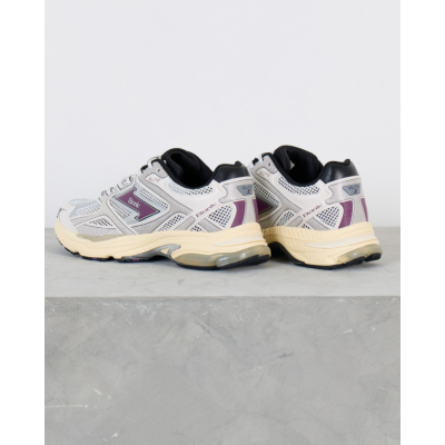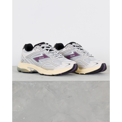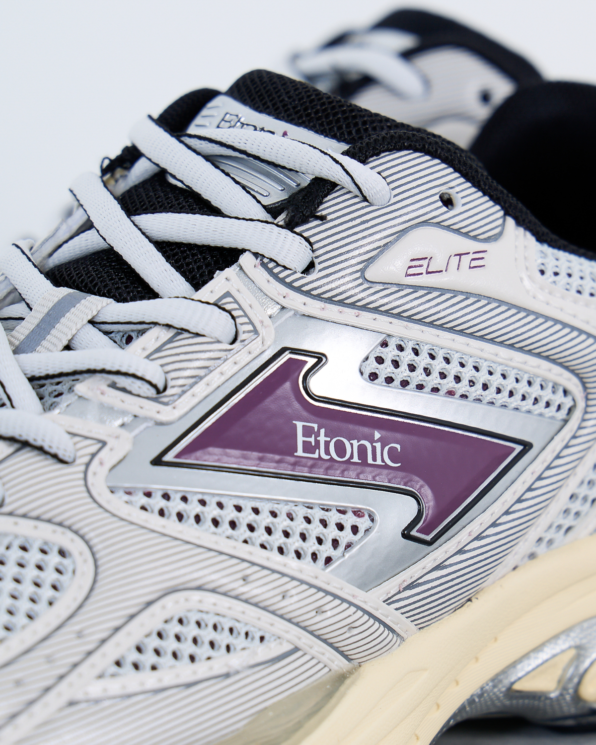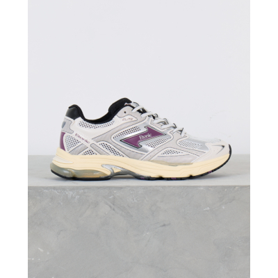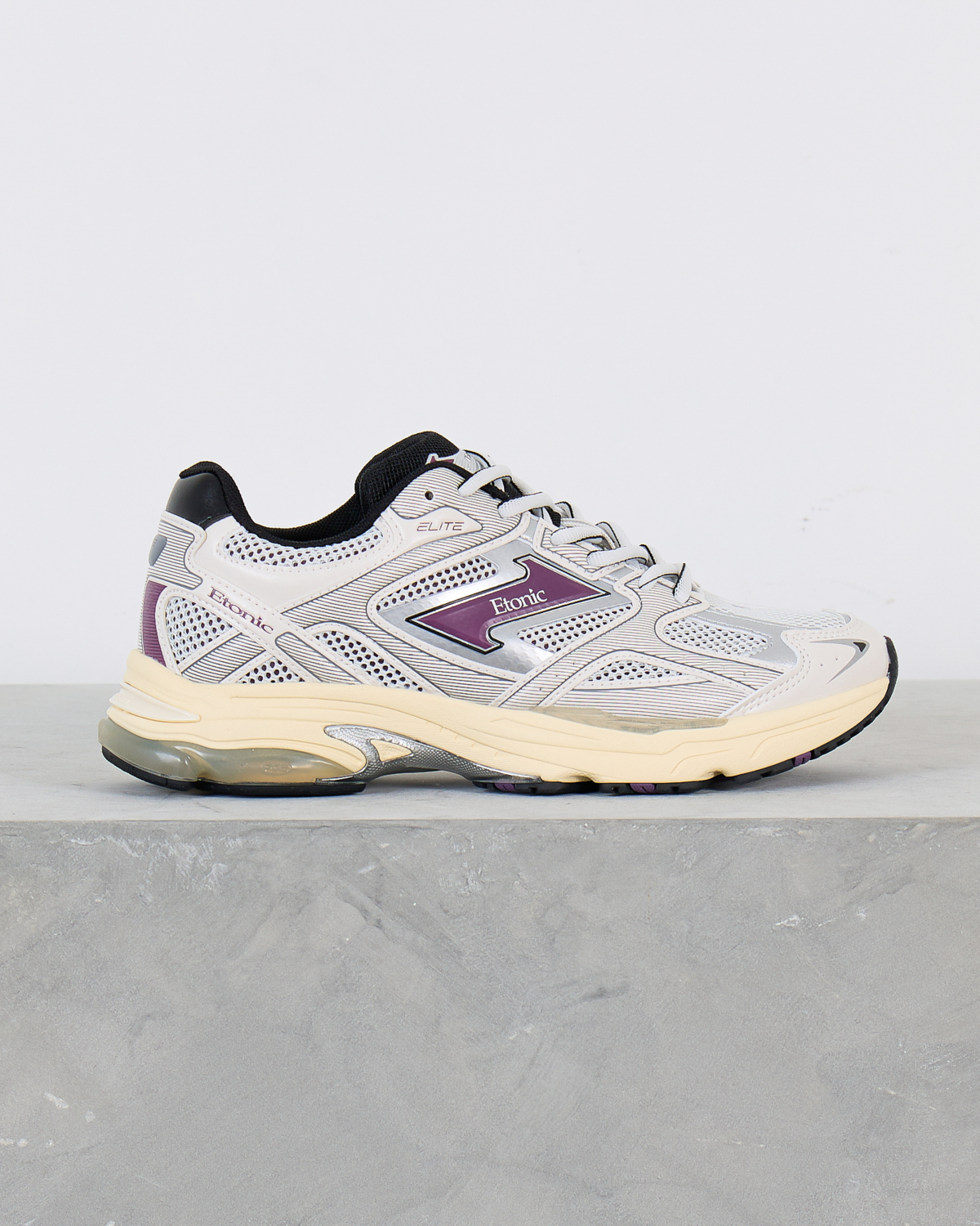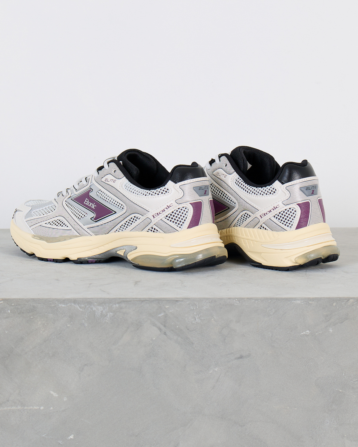 These retro-inspired sneakers feature a sophisticated white base with striking purple accents that elevate your women's clothing collection. The mesh and leather upper delivers breathability and structure, while the lace-up closure ensures a secure fit. Perforated details enhance ventilation, and the chunky cream sole adds contemporary appeal. From Etonic, these sneakers combine athletic functionality with street-style aesthetics.