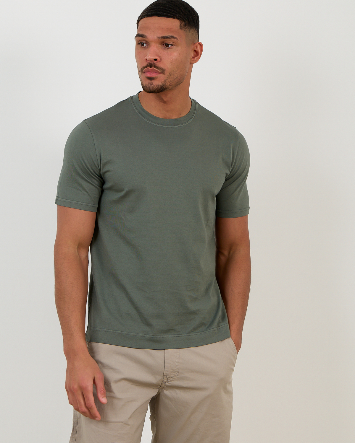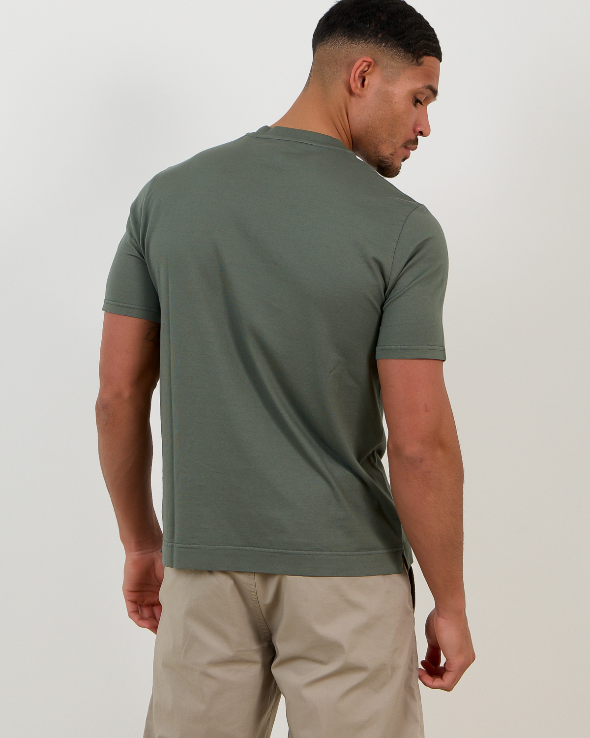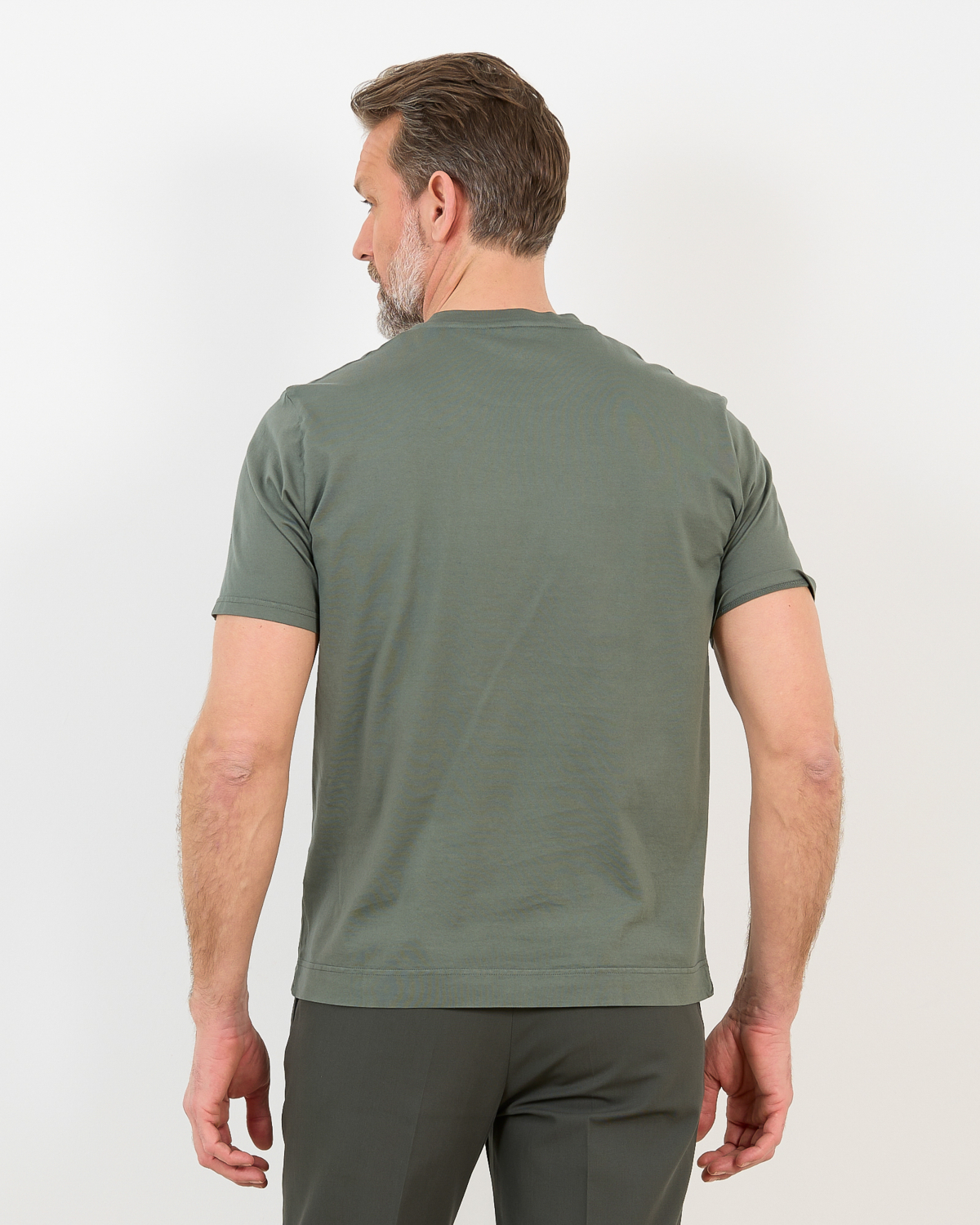 Layer this versatile t-shirt under blazers for smart-casual looks, or pair with chinos and loafers for refined weekend styling. The green hue complements navy jackets beautifully, while also working with beige trousers or dark denim for relaxed combinations.