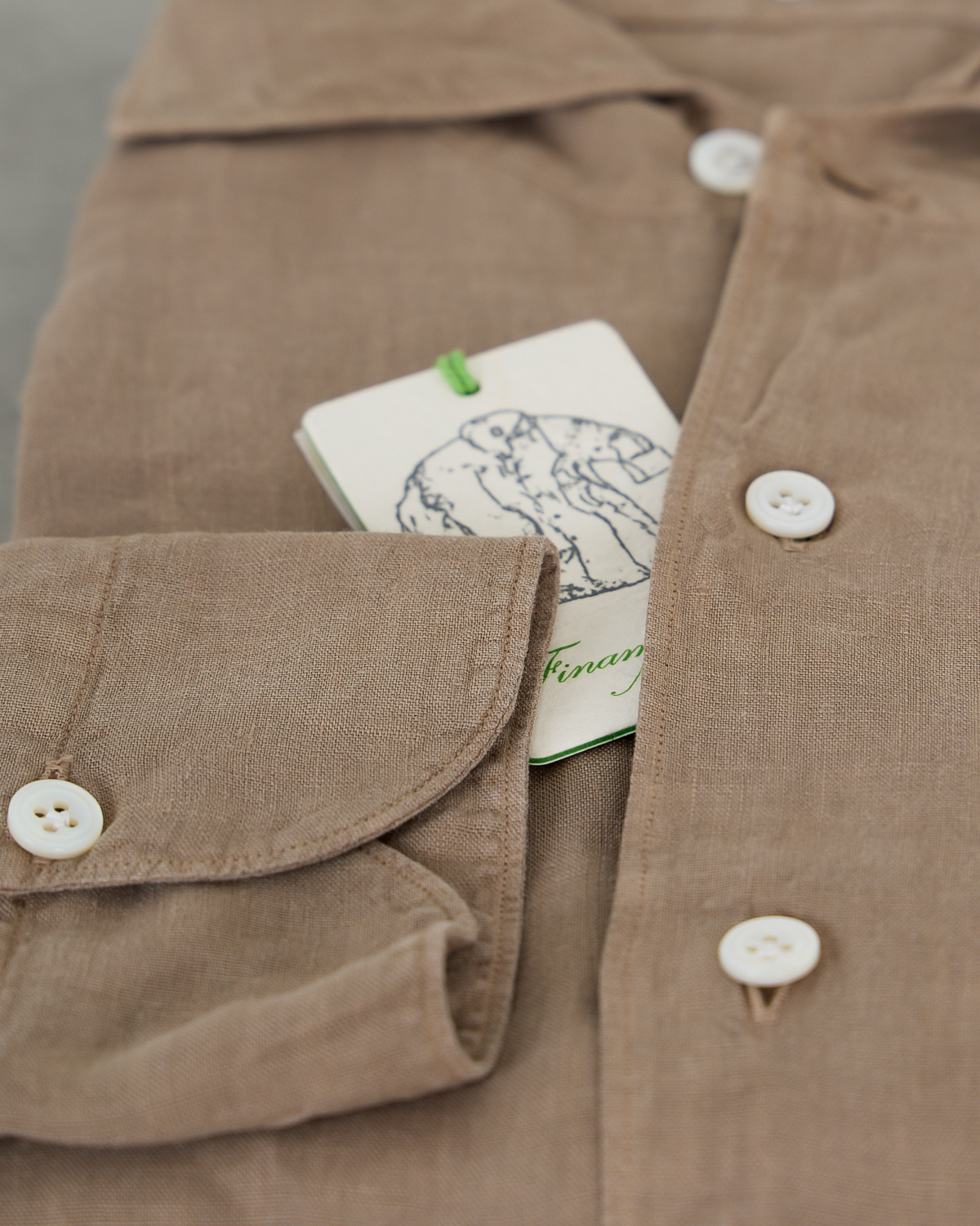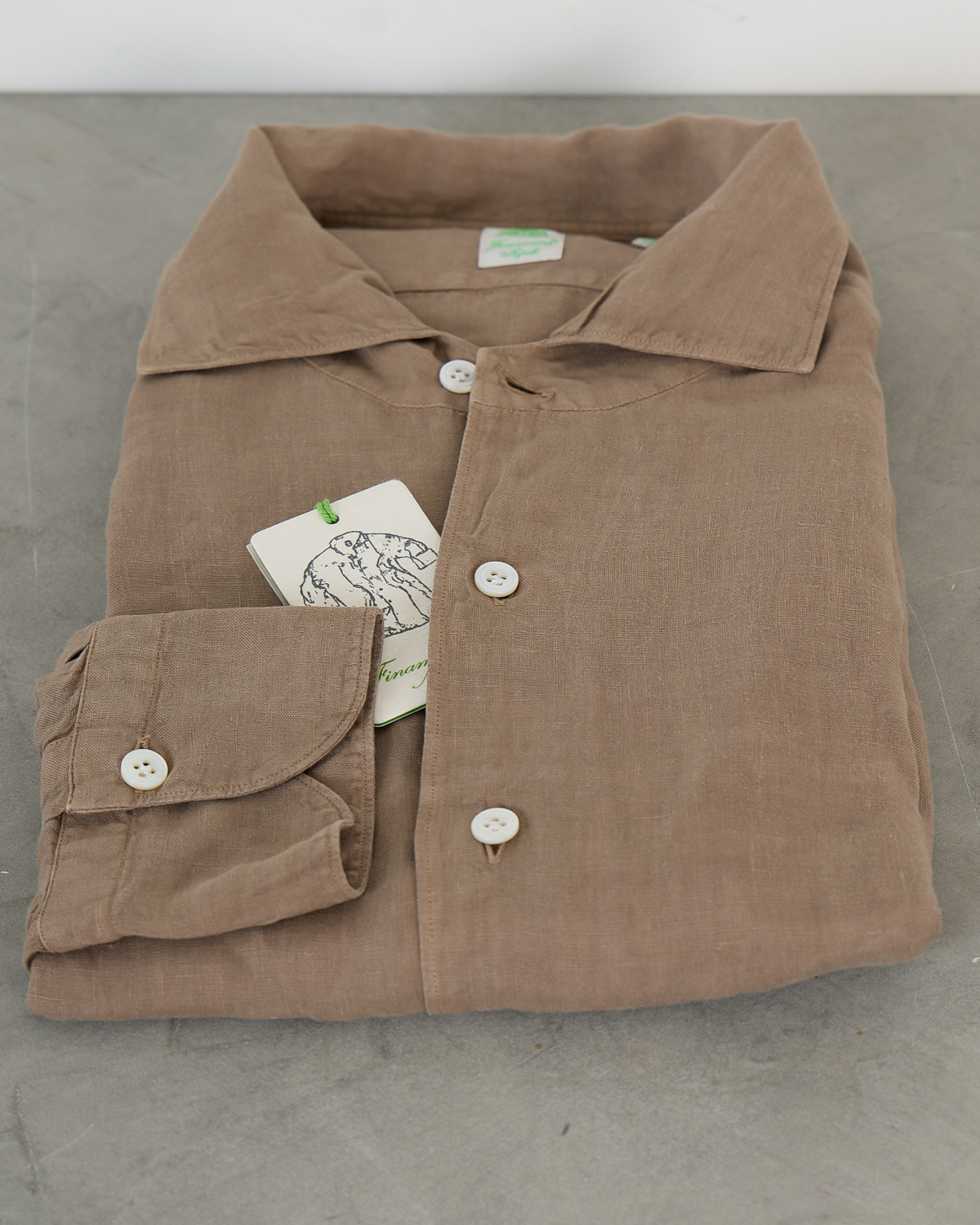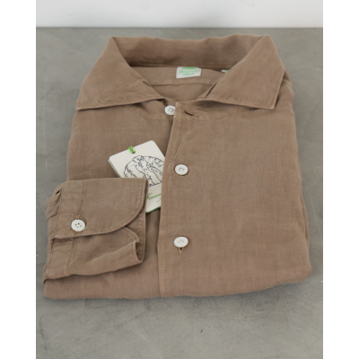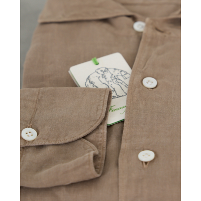 This refined hazelnut shirt from Finamore 1925 combines Italian craftsmanship with contemporary men's clothing design. The light brown linen fabric feels soft and breathable, while the classic collar and button closure create a polished appearance. Long sleeves with buttoned cuffs add versatility, and the chest pocket provides practical functionality. The natural texture and warm tone make this piece a sophisticated addition to your casual wardrobe.
