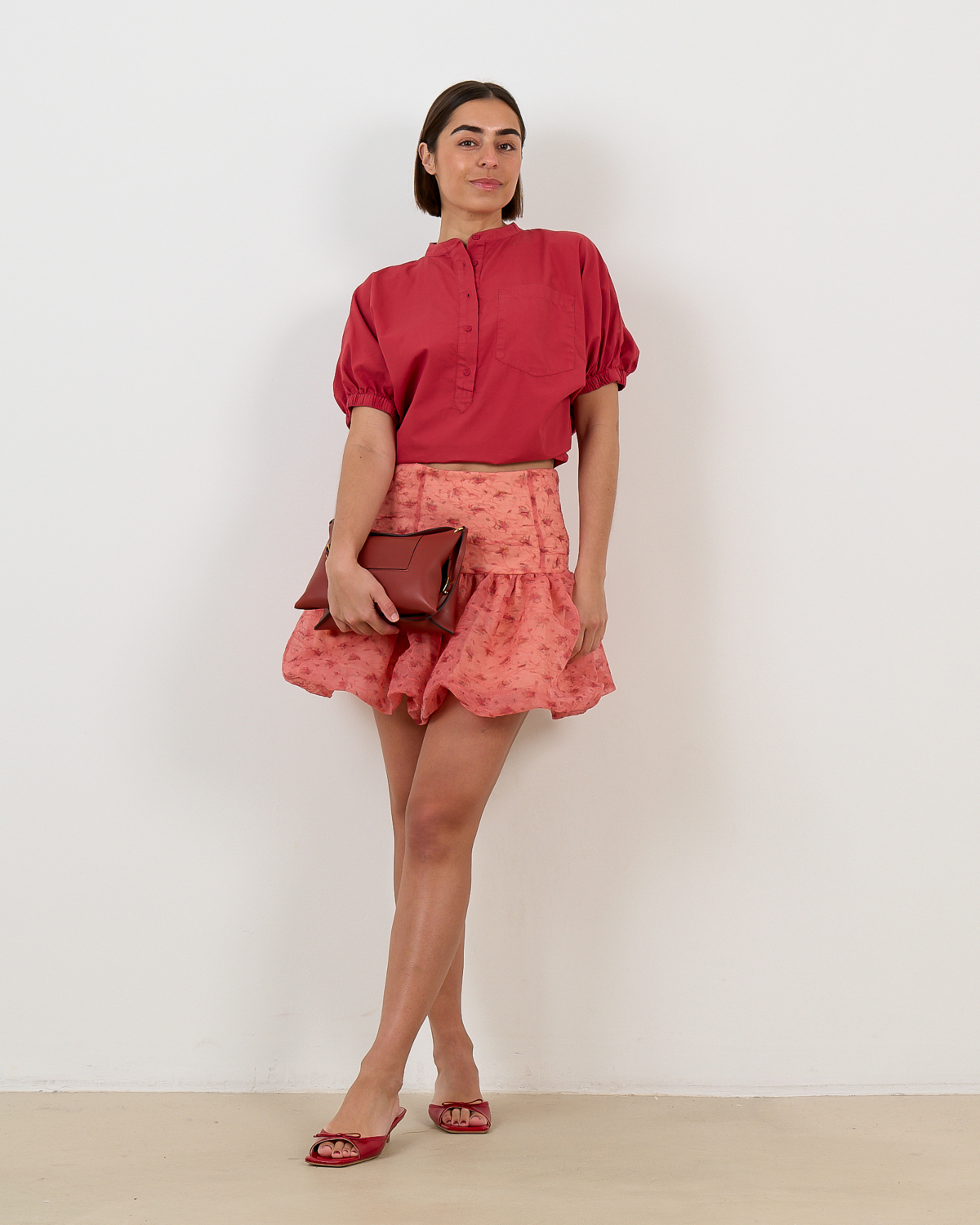 Style this eye-catching skirt with a crisp white shirt for polished daytime elegance, or pair it with a fitted knit top for evening occasions. The versatile pink tone complements neutral blazers and denim jackets beautifully.