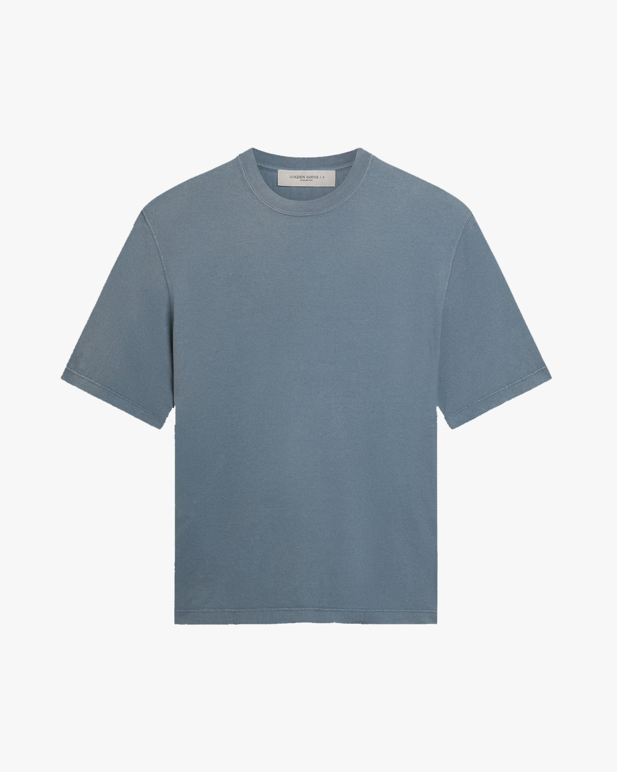 This blue cotton t-shirt from Golden Goose combines premium comfort with distinctive style. Crafted from 100% cotton, the fabric feels soft against your skin while maintaining its shape throughout the day. The relaxed regular fit offers comfortable movement, while the crew neck and short sleeves create a timeless silhouette. A subtle embossed logo print across the chest adds signature branding detail. The refined blue shade elevates this essential piece of men's clothing beyond basic casual wear.