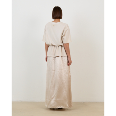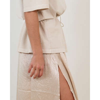 This striking beige dress from Haikure combines contemporary elegance with effortless style. Crafted from 100% cotton in a soft beige tone, this women's clothing piece features a round neckline and half sleeves for comfortable wear. The regular fit silhouette includes a drawstring waist that creates a flattering shape, while the textured lower panel adds visual interest and dimension to the design.