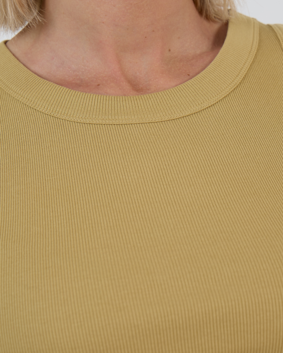 This sleeveless mustard yellow tank top from Drykorn brings vibrant energy to your women's clothing collection. The ribbed cotton construction features a classic round neckline and regular fit silhouette. Crafted from 100% cotton, this tank top offers breathable comfort and easy care. The warm mustard shade adds a bold pop of color to any outfit.