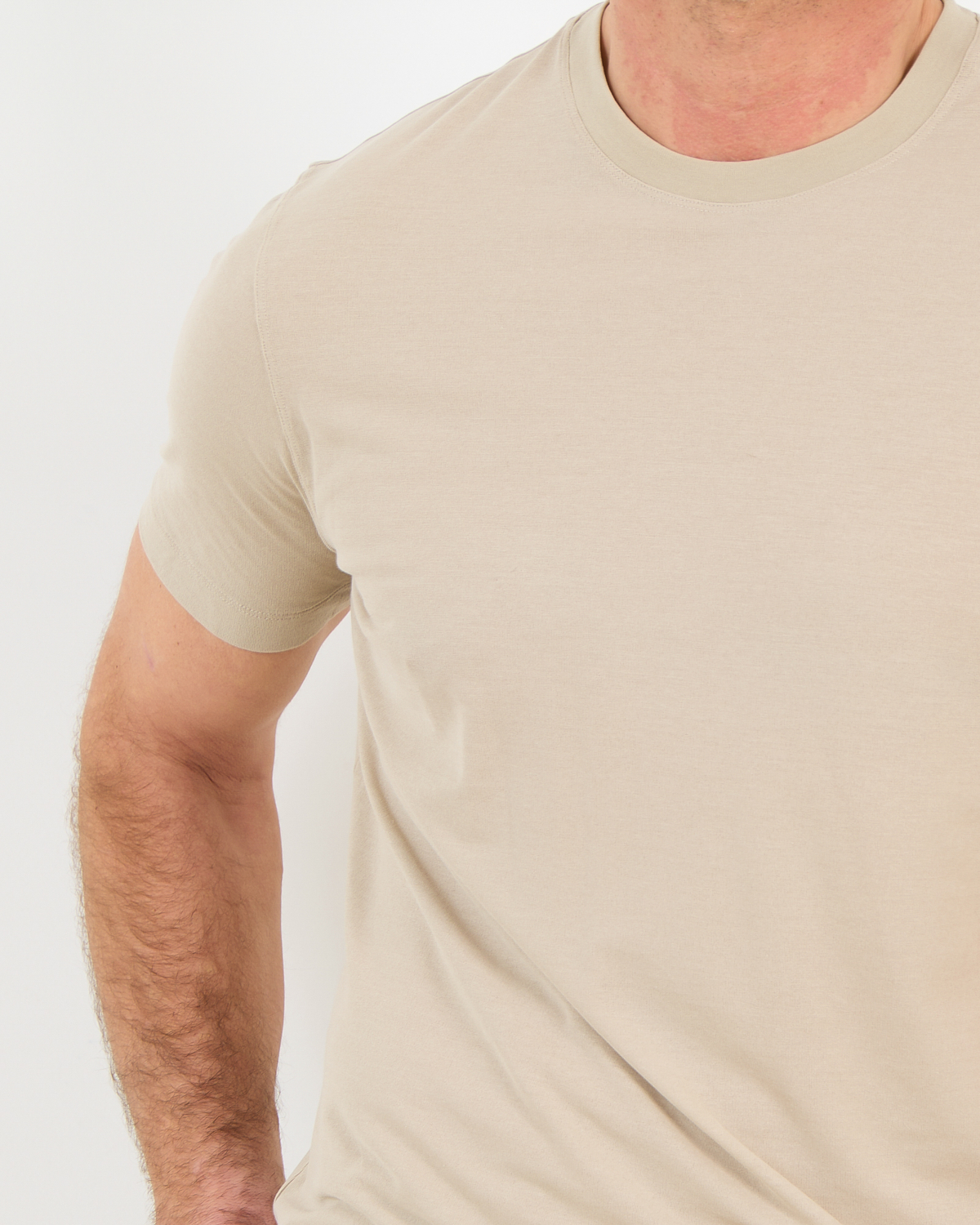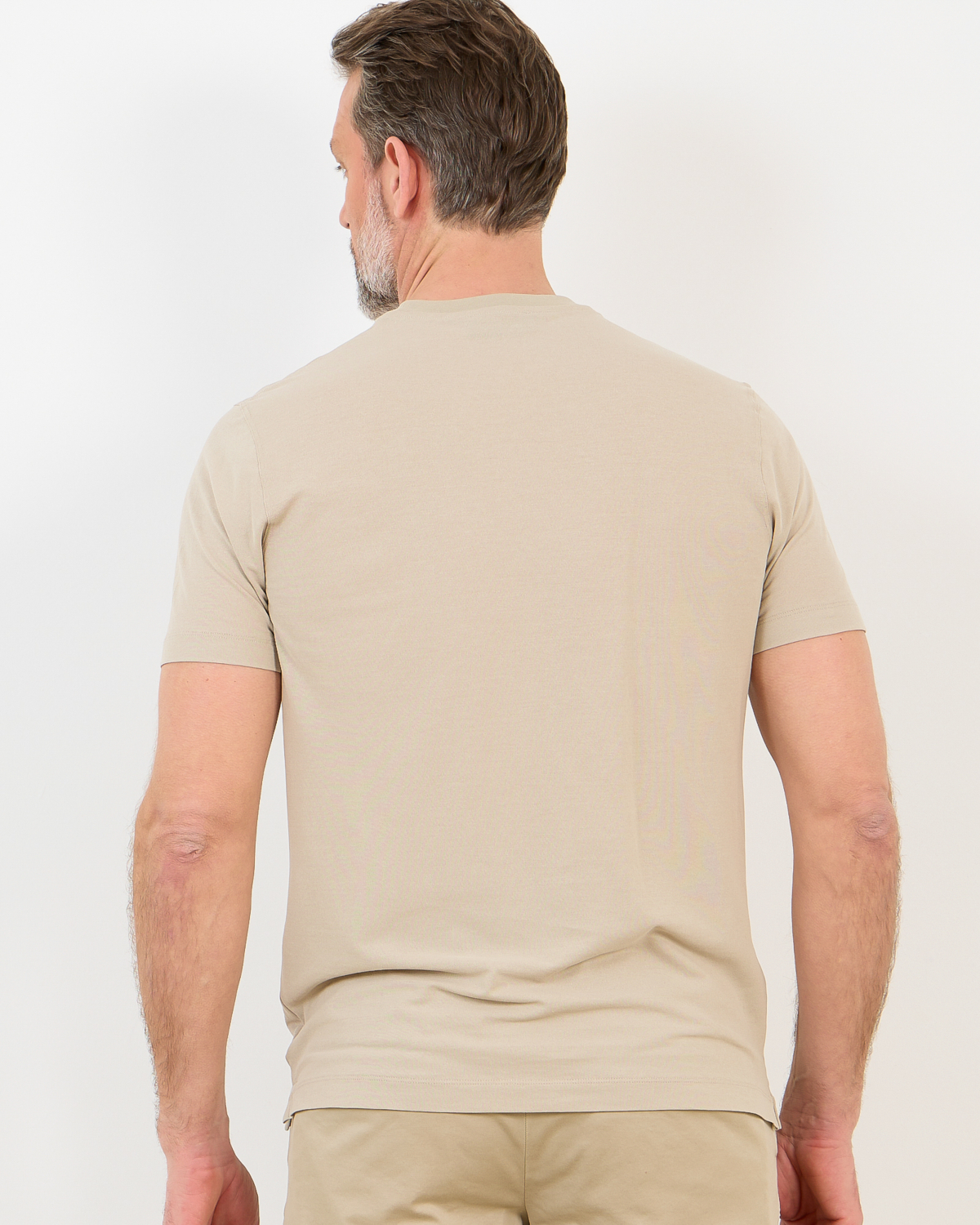 This refined beige t-shirt from Incotex combines classic men's clothing with contemporary comfort. Crafted from 100% cotton, the fabric feels soft and breathable against your skin. The regular fit provides a balanced silhouette that works across different body types. The crew neck design and short sleeves create a clean, minimalist appearance in a versatile beige tone. The quality construction ensures the shirt maintains its shape and color wash after wash.