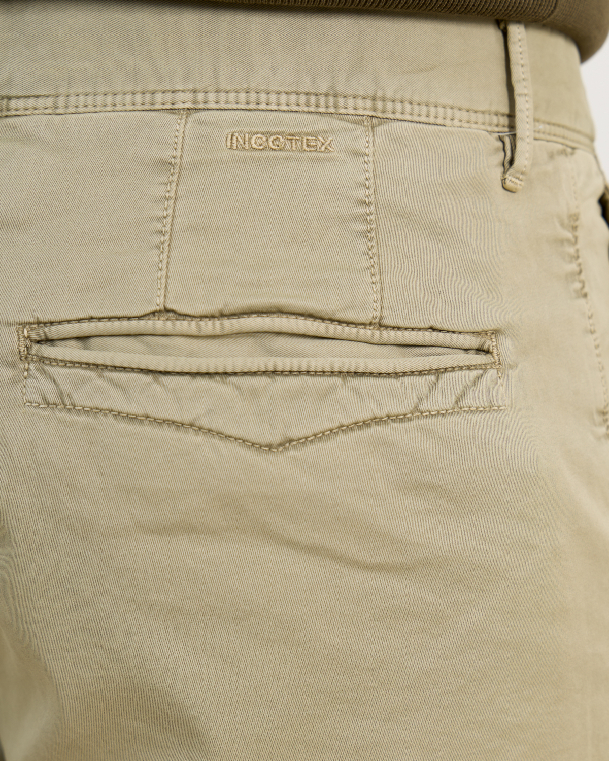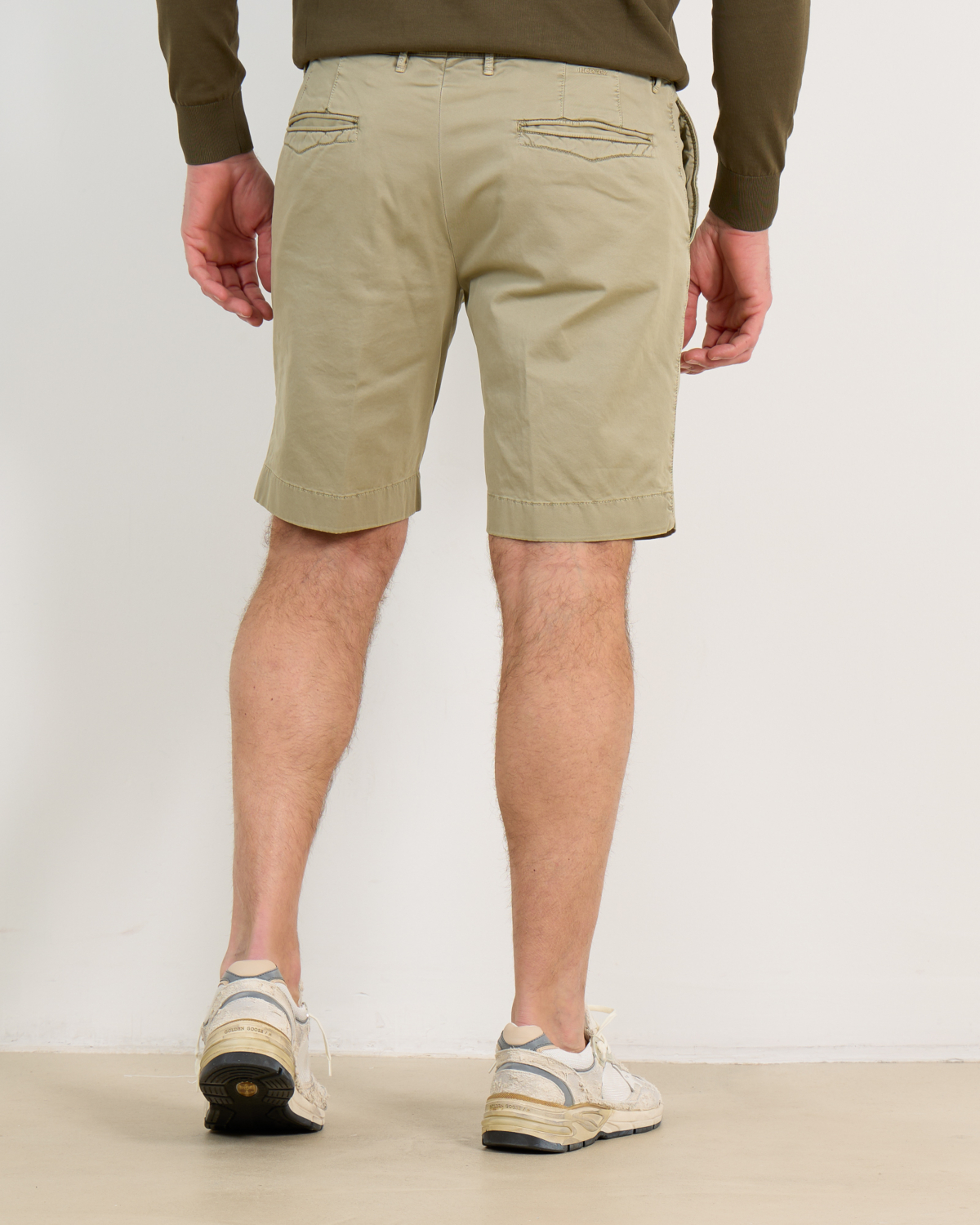 These sage colored chino shorts deliver refined comfort for your men's clothing collection. Crafted by Incotex, the premium cotton fabric features a modern fit that moves naturally with you. The classic button and zip closure ensures a secure fit, while front and back pockets provide practical functionality. Turned up cuffs add a polished finishing touch that elevates the overall design.