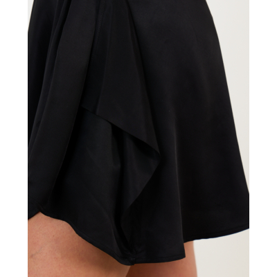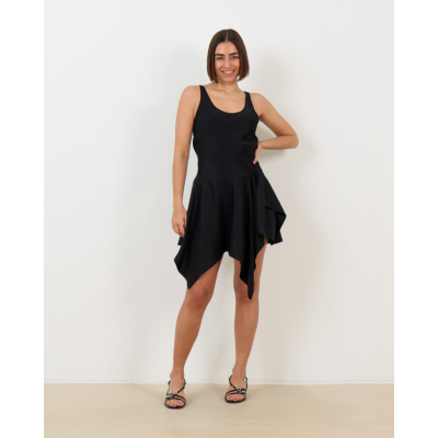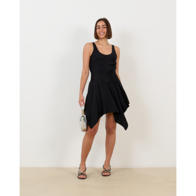 This striking black mini dress showcases an architectural asymmetrical hemline that creates dynamic movement with every step. The sleeveless design features a classic scoop neckline and fitted bodice that flows into an irregular skirt with cascading fabric panels. Crafted from 100% viscose in a regular fit, this IRO piece combines contemporary edge with refined femininity. The rich black hue and fluid drape make this women's clothing essential both bold and versatile. Style this asymmetrical dress with strappy heels and statement jewelry for evening occasions, or layer with a leather jacket and ankle boots for an edgy daytime look.