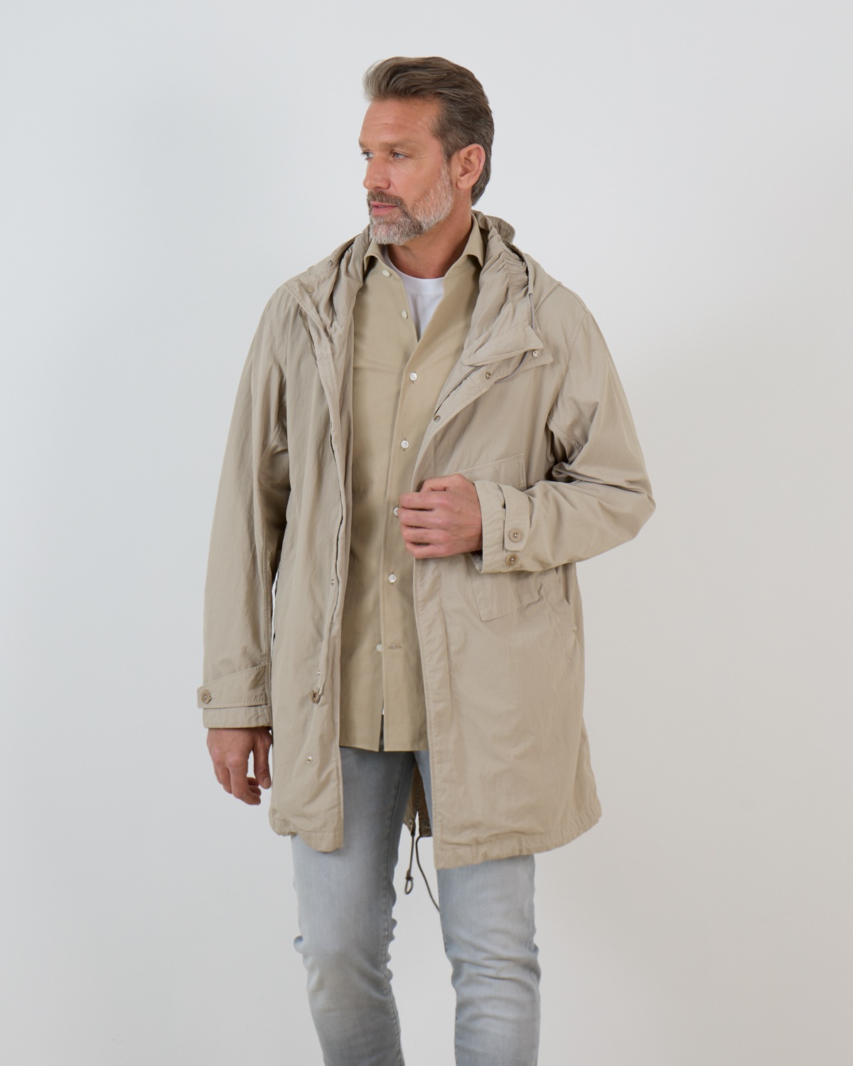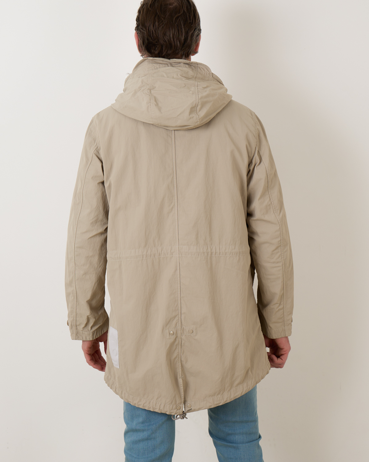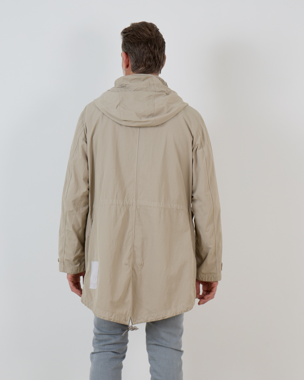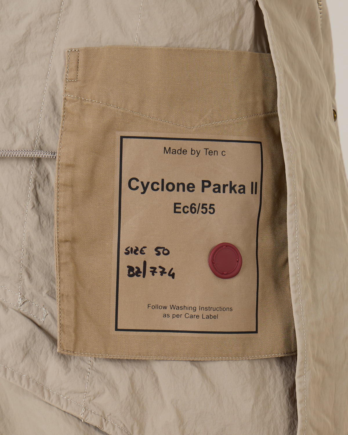 De Cyclone Parka van Ten-C komt in de kleur taupe en is gemaakt van technisch materiaal uit Japan. Deze materialen zijn gekookt en gewaxt om een sterke robuuste buitenlaag te krijgen die beschermt is tegen buitenelementen. De halflange parka met capuchon heeft een gecombineerde knoop- en ritssluiting en verschillende praktische zakken. Aan de achterkant is de parka voorzien van een gesplitse zoom. Combineer de parka met een Ten-C down liner voor extra warmte.
