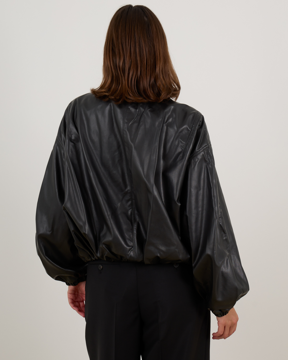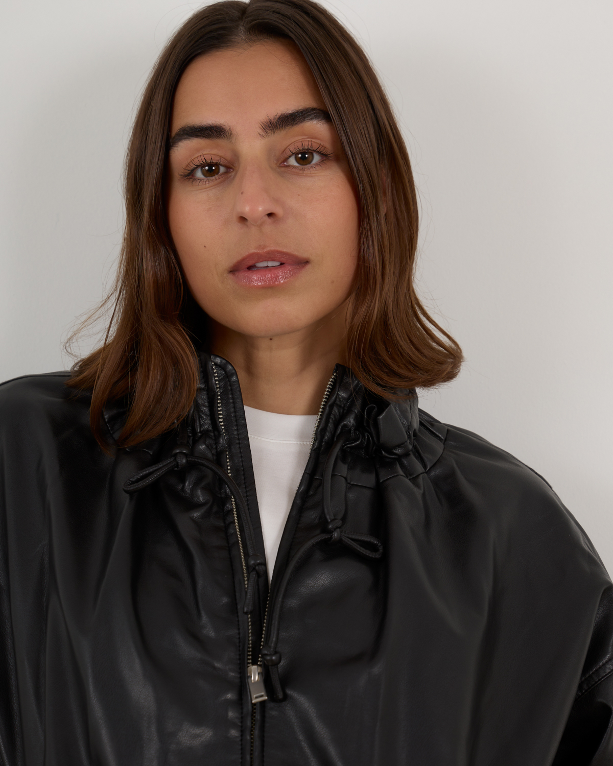 This striking black faux leather jacket brings contemporary edge to your women's clothing collection. Crafted from 100% polyurethane, the Neela features distinctive drawstring details around the collar that create a unique textural element. The regular fit silhouette includes long sleeves with elasticated cuffs and a full zip closure for versatile styling. Marant Étoile delivers modern sophistication through thoughtful design details that elevate this essential outerwear piece.