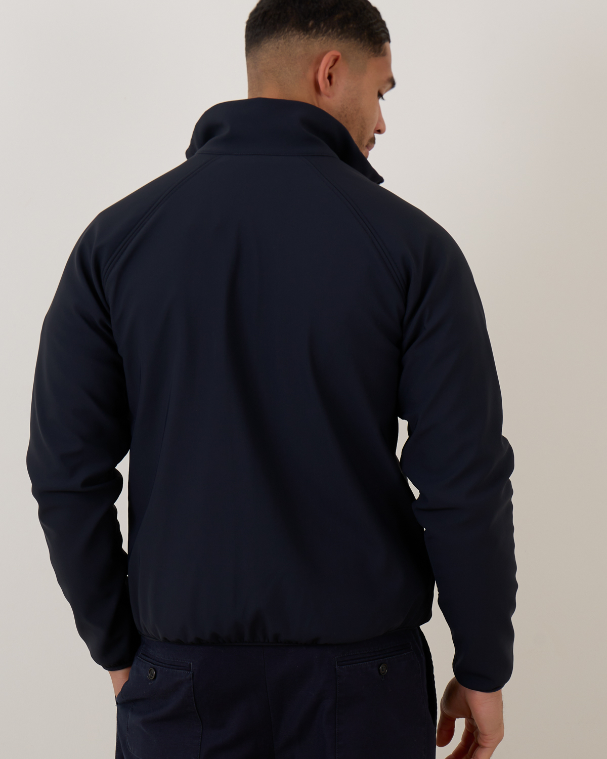 Polyester-elastane blend for comfort and flexibility Full-zip closure with stand collar Raglan sleeves for enhanced mobility Practical side pockets for storage Regular fit in versatile navy shade