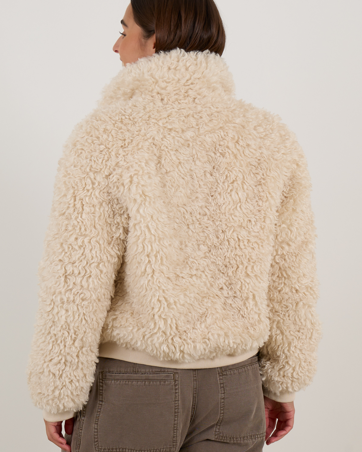 Style this teddy jacket over casual sweaters and tailored trousers for contemporary contrast, or layer it with sleek denim and ankle boots for urban sophistication.