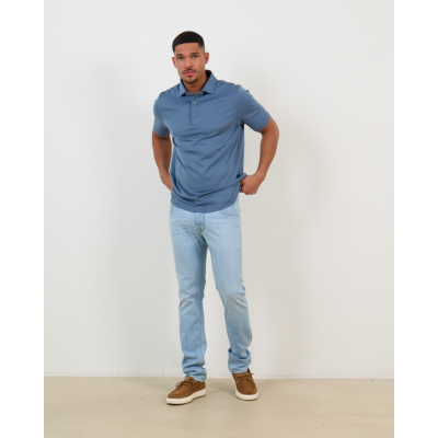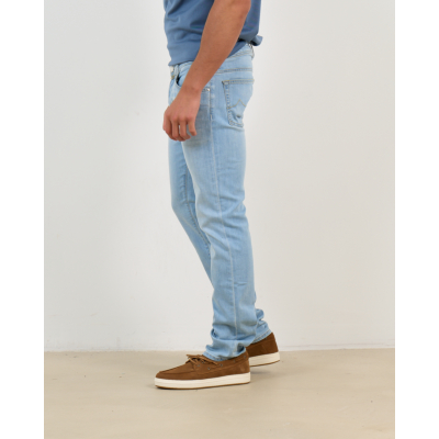 These light blue jeans combine Italian craftsmanship with contemporary men's clothing design. The Nick Slim 300d features a sophisticated light blue wash with subtle fading details that add character to the denim. Crafted from a premium blend of 80% cotton, 13% modal, and 5% silk, the fabric offers exceptional comfort and a refined texture. The slim fit cut creates a tailored silhouette while maintaining flexibility for daily wear. Classic five-pocket styling includes front and back pockets with contrast stitching details that highlight the quality construction.