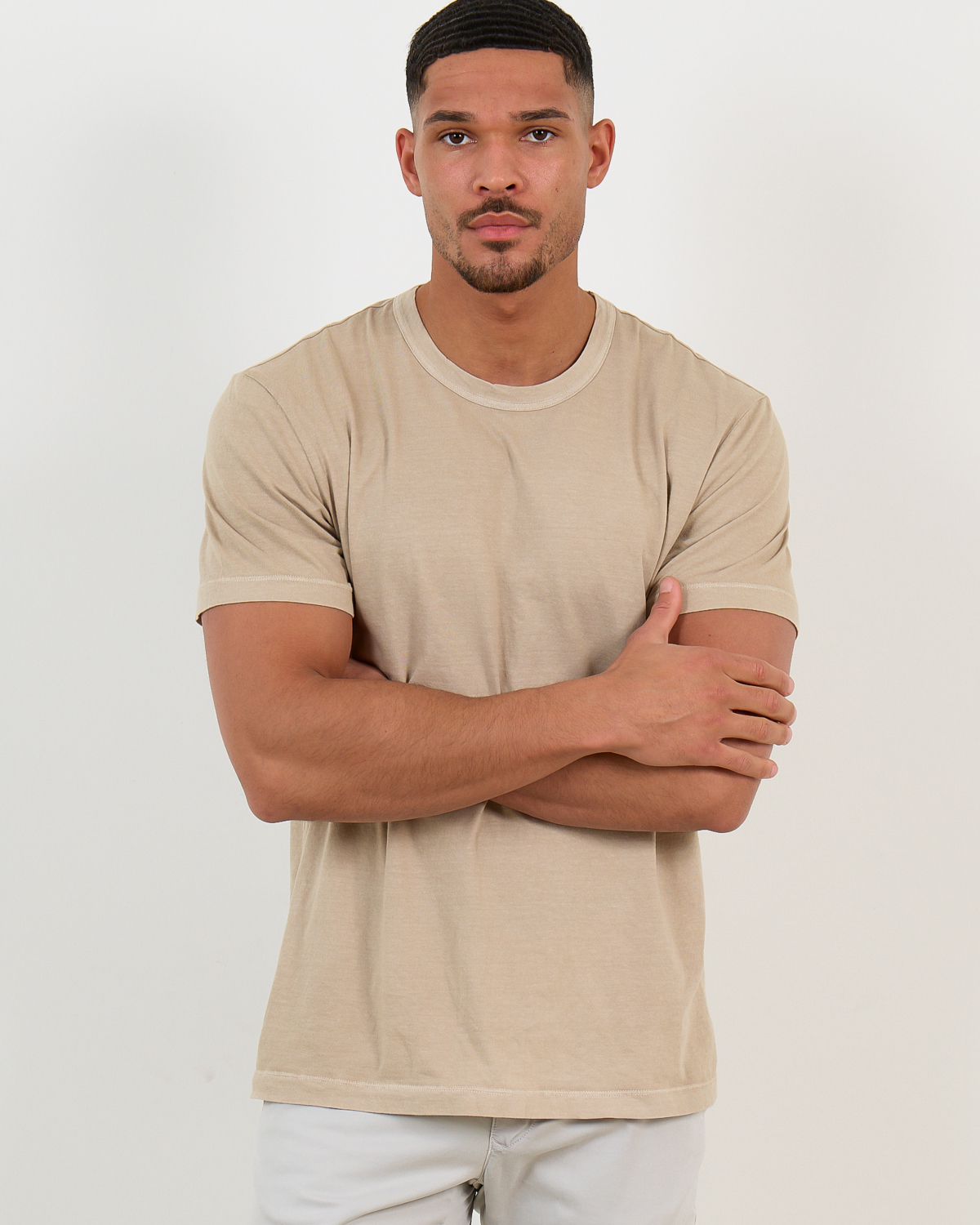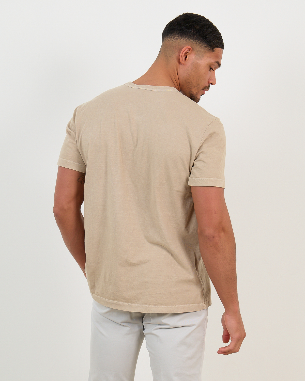 This short sleeve crew neck t-shirt showcases the refined simplicity that defines quality men's clothing. Crafted from 100% cotton in a sophisticated green tone, the fabric feels soft against your skin while maintaining its shape throughout the day. The regular fit provides comfortable movement with a clean, contemporary silhouette. James Perse delivers exceptional craftsmanship through precise stitching and a perfectly finished crew neckline.