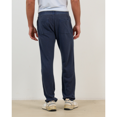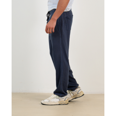 These navy blue lightweight joggingpants combine casual comfort with refined style for men's clothing that transitions seamlessly from relaxation to recreation. The 100% cotton construction provides breathable softness while maintaining structure. Features include an elastic waistband with adjustable drawstring, side pockets for essentials, and back patch pockets for added functionality. The regular fit offers a comfortable silhouette that moves naturally with you.