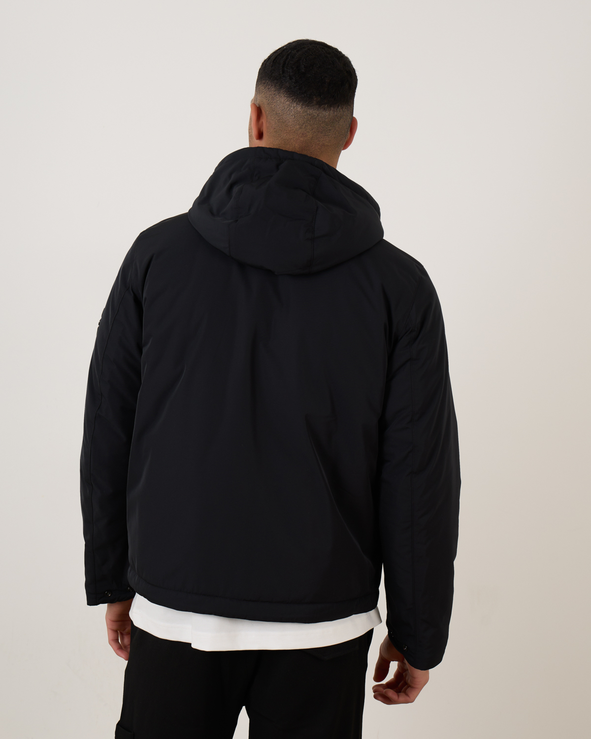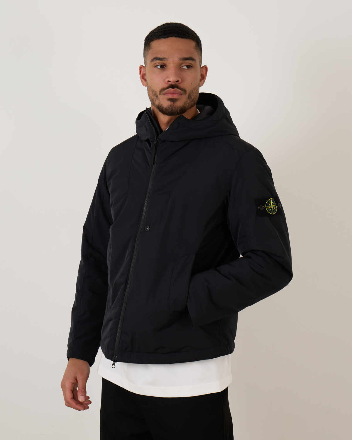 De Stone Island 4100047 padded hooded jacket in black is gemaakt van zachte polyester micro twill met een comfortabele structuur en diepe kleur. De jas is gevoerd met PrimaLoft® Gold P.U.R.E™, een hoogwaardige, gerecyclede isolatie die uitstekende warmte biedt bij minimaal gewicht. Afgewerkt met een gewatteerde capuchon met trekkoord, schuine steekzakken, een binnenzak met geborduurd logo, verstelbare manchetten, ventilatieoogjes en een tweewegs ritssluiting. De waterafstotende finish en de iconische Stone Island badge maken het geheel compleet.