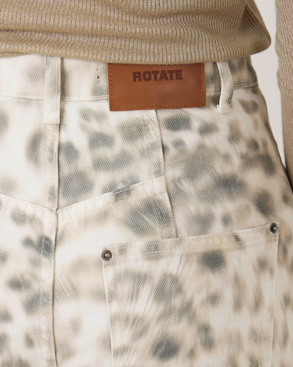 Ontdek de statement stijl van deze Rotate Cargo Pants. De denim broek heeft een o-shape silhouet en is versierd met een leopard print in de kleur snow. Het is ontworpen met twee voorzakken en twee achterzakken.