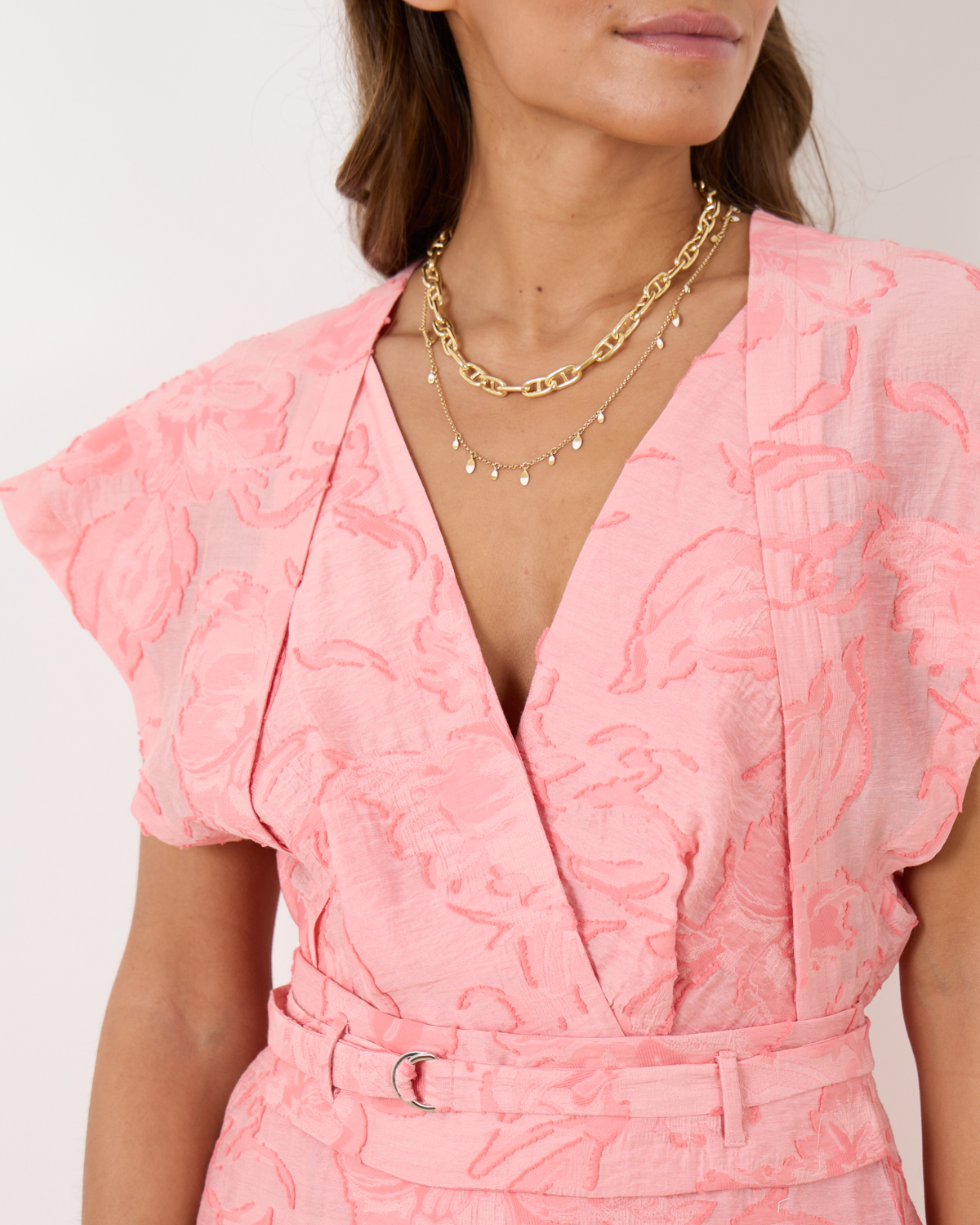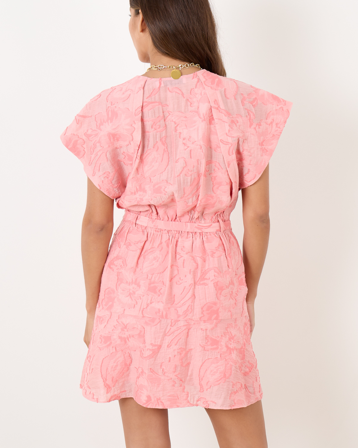 Maak een kleurrijk statement met de Fabiana jurk van IRO. Deze prachtige jurk straalt door het verfijnde silhouet. Het is iets getailleerd bij de middel wat wordt versterkt door een ceintuur en heeft grote overlappende schouders. De jurk is uitgevoerd in de kleur Coral Pink en is bewerkt met een prachtig patroon in de stof.