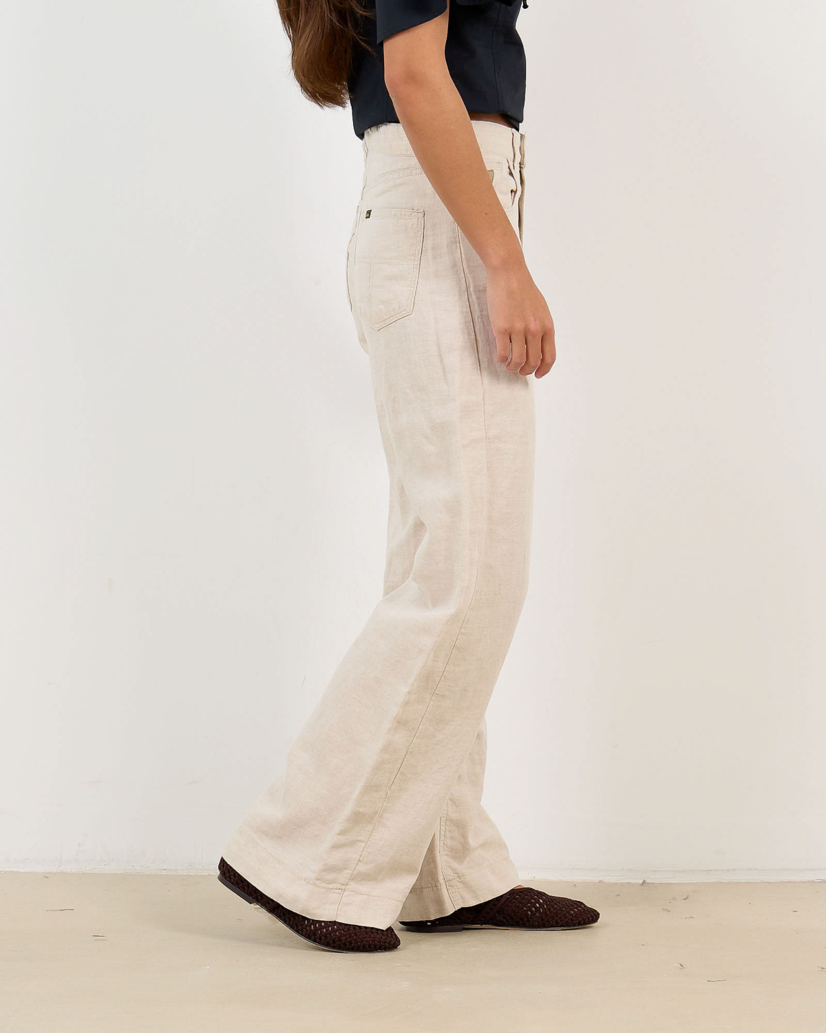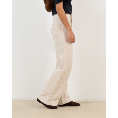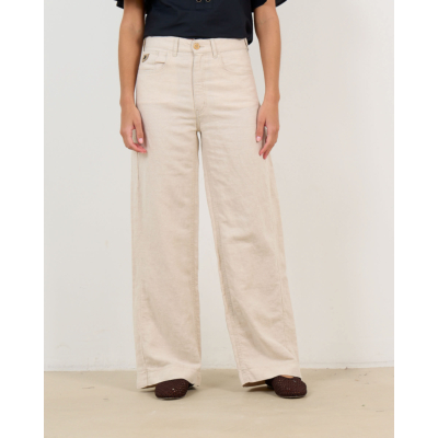 These striking beige wide leg trousers showcase the perfect blend of comfort and contemporary style. Crafted from a premium linen cotton blend (50% linen, 50% cotton), they feature a regular fit with dramatically wide straight legs that create an elegant silhouette. The classic five-pocket styling includes front and back pockets, while the button and zip closure ensures a secure fit. The natural beige tone adds versatility to your women's clothing collection, making these trousers a standout piece for modern wardrobes.