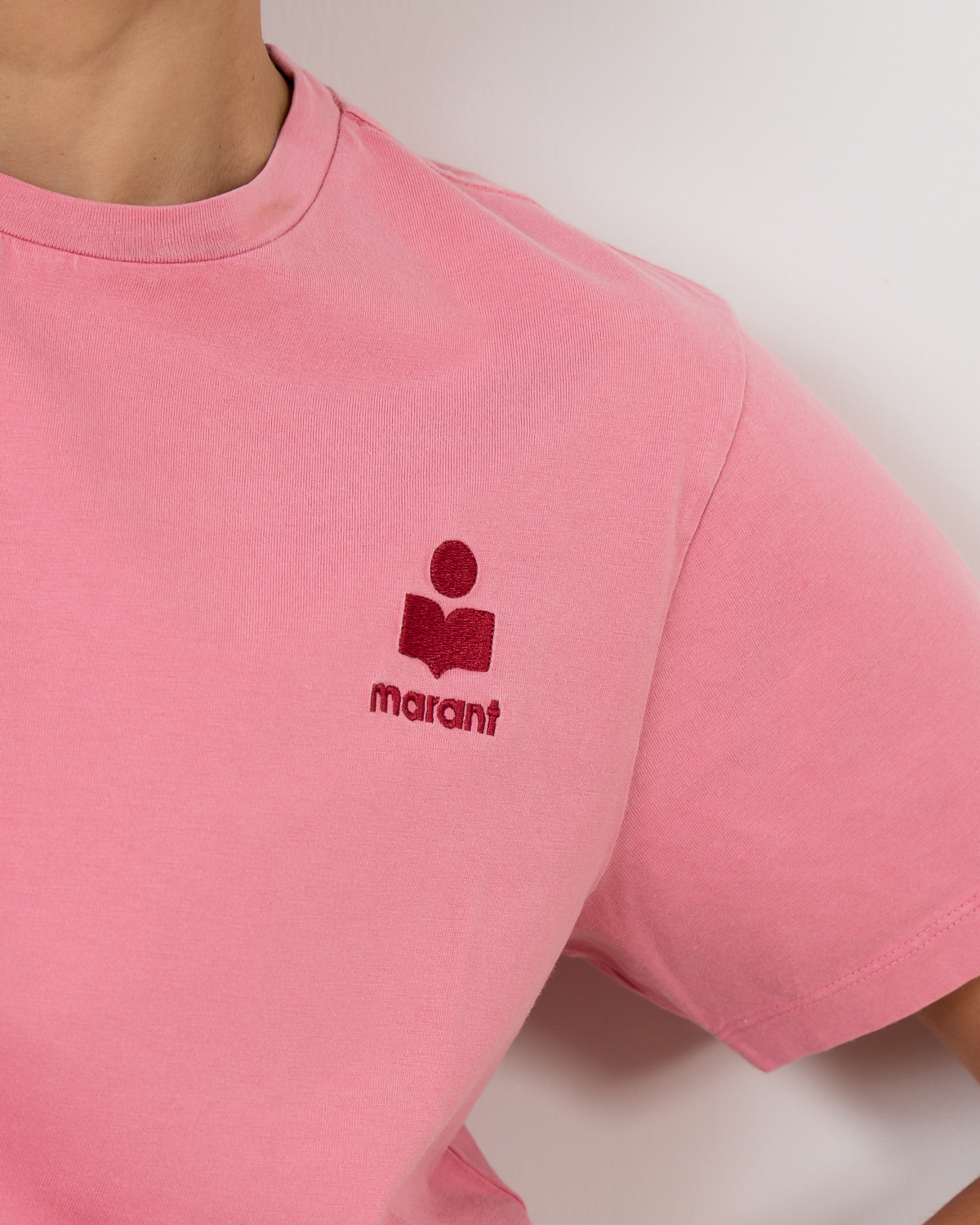 This striking pink t-shirt from Marant Étoile brings contemporary elegance to your women's clothing collection. The soft cotton construction ensures comfort while the regular fit flatters your silhouette beautifully. The embroidered logo detail on the chest adds a refined touch to this versatile piece. Crafted from 100% cotton with short sleeves and a classic round neckline, this women's apparel essential combines quality with modern style.
